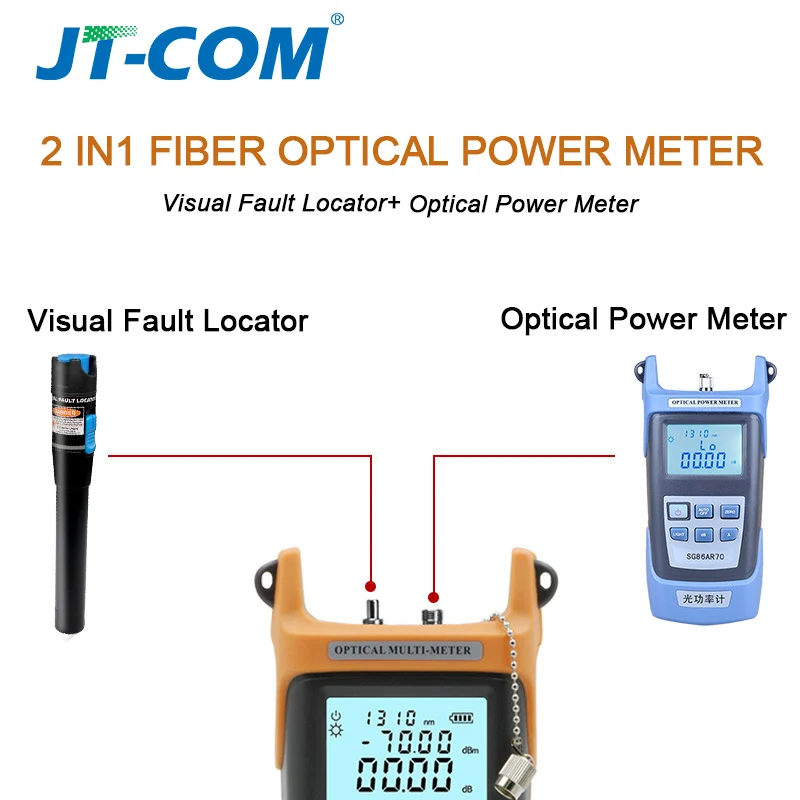 Comprar Medidor de potencia óptica 2 en 1 Localizador visual de fallas Probador de cable de fibra óptica óptico -70 a + 3dBm 15mW con localizador visual de fallas de 15 km para probador de decaimiento de luz de fibra