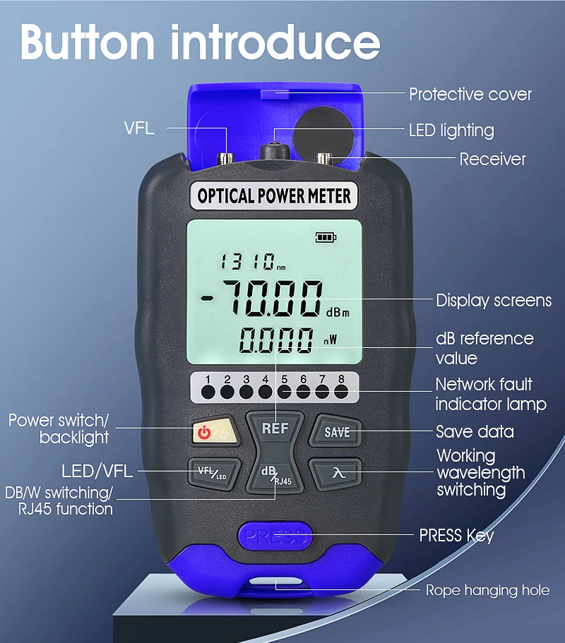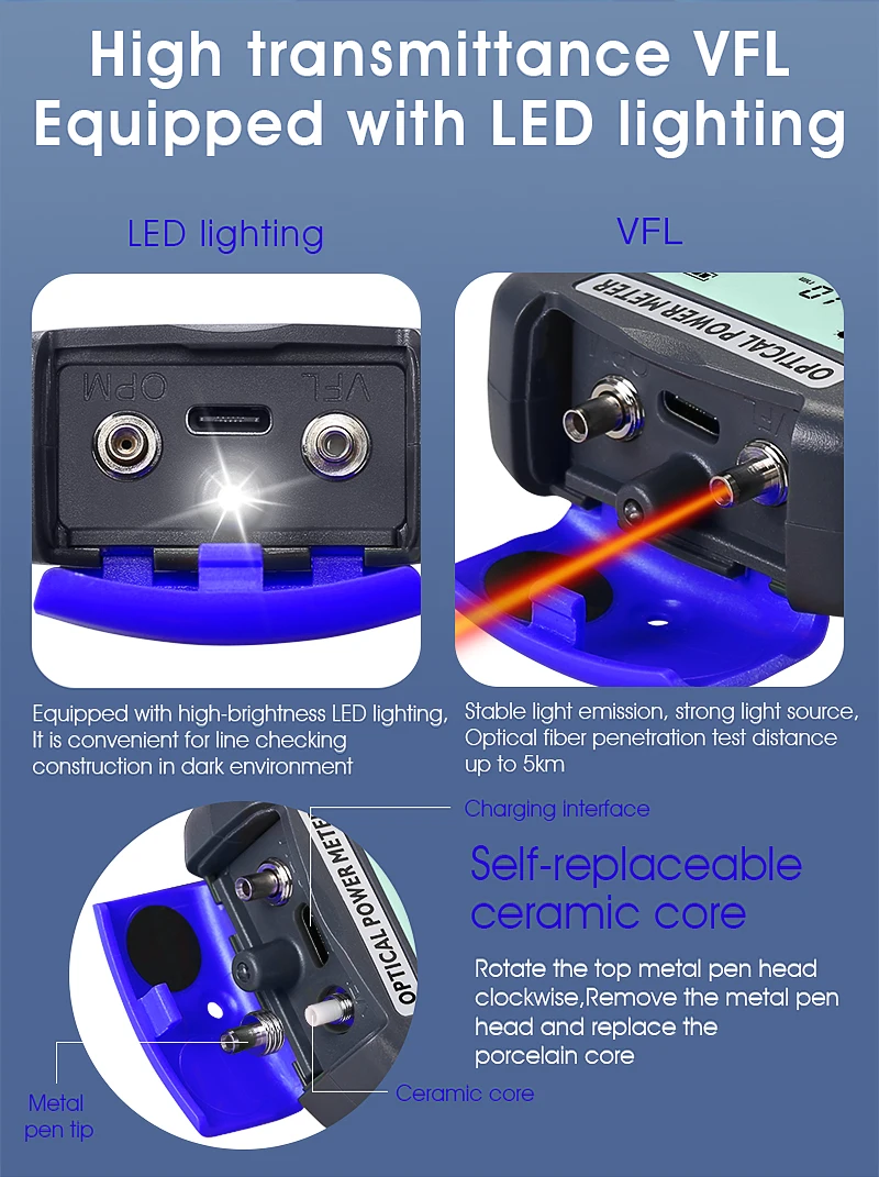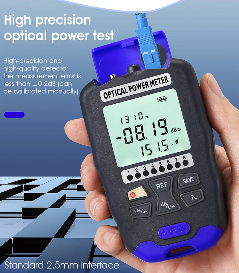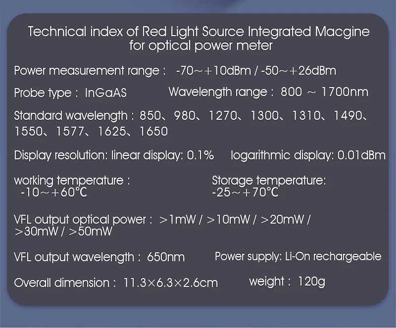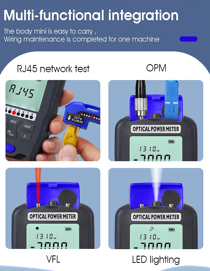 Medidor de potencia óptica 2. 2-50 ~ + 26dBm probador de Cable de red de fibra multifunción 4 en 1 Localizador Visual de fallas 1-50MW (opcional)