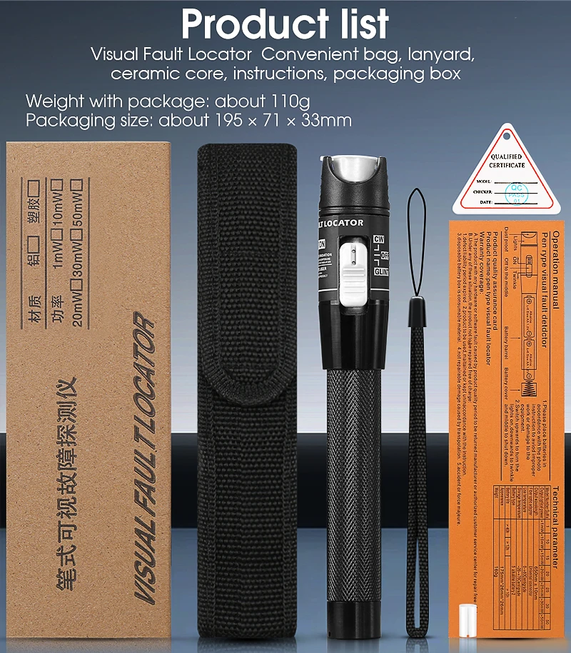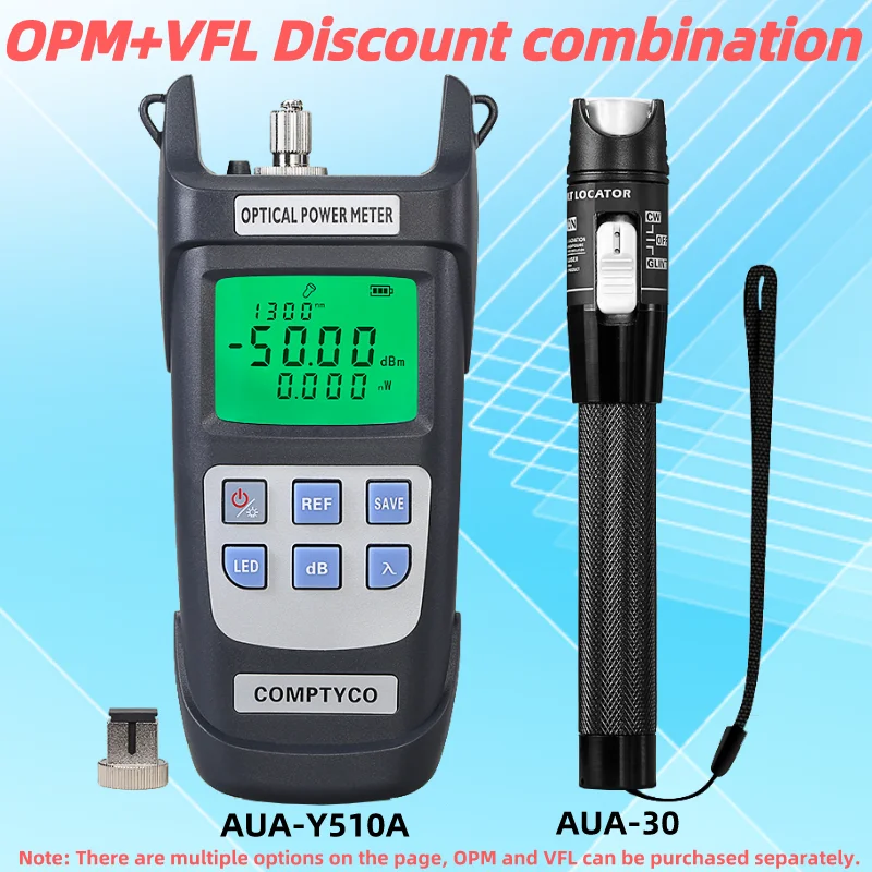 Comprar Medidor de potencia óptica AUA-Y510A (OPM -50 ~ + 26dBm) y Localizador Visual de Fallas (30/1/10/20/50mw VFL) Kit de herramientas de probador de fibra FTTH (opcional)