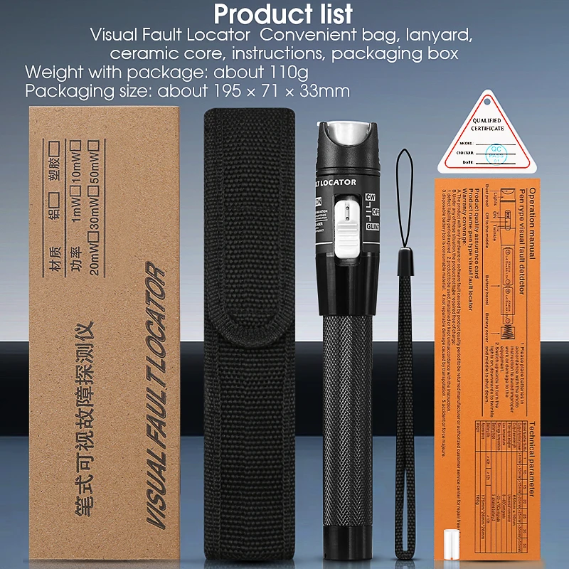 Medidor de potencia óptica FTTH (OPM -50 ~ + 26dBm) y Localizador Visual de Fallas (30/1/10/20/50mw VFL) Kit de herramientas de probador de Cable de fibra óptica (opcional)