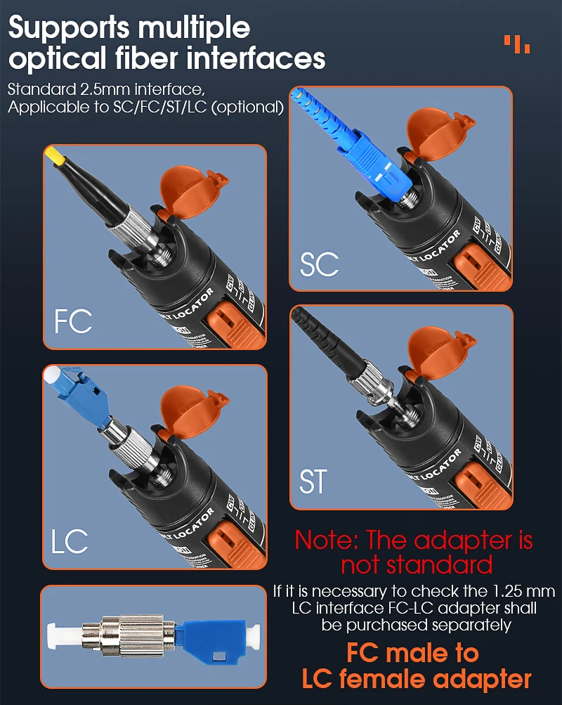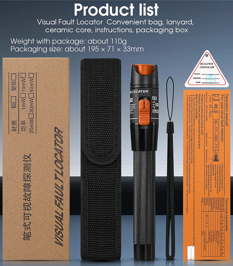 Medidor de potencia óptica (OPM -50 ~ + 26dBm) y Localizador Visual de Fallas (10/1/20/30/50mw VFL) FTTH Kit de herramientas de probador de Cable de fibra óptica (opcional)