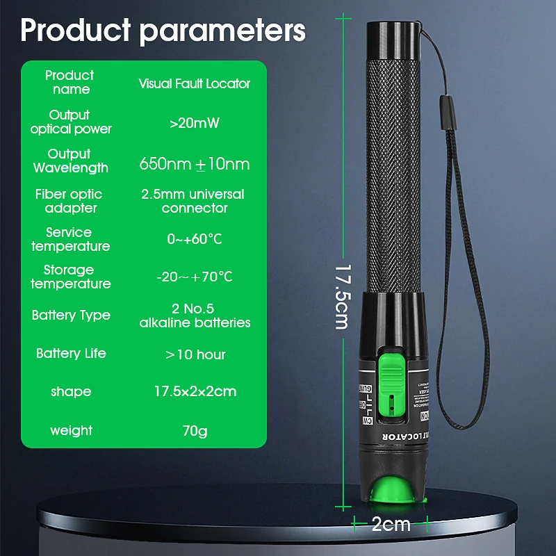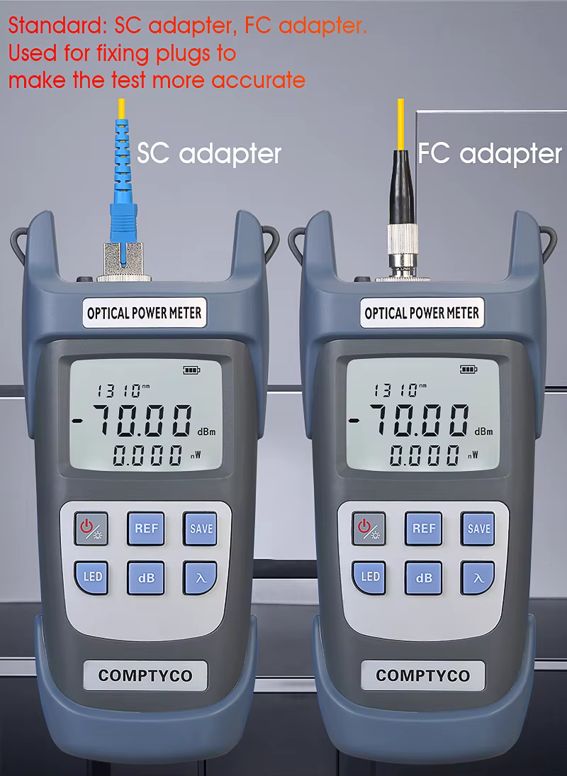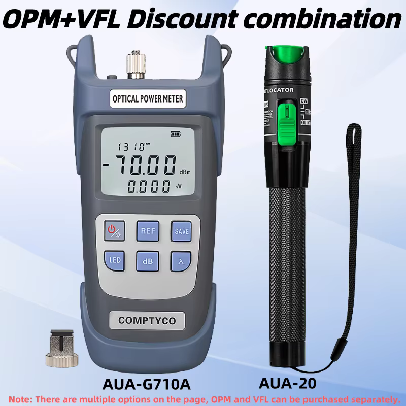 Medidor de potencia óptica (OPM -70 ~ + 10dBm) y Localizador Visual de Fallas (20/1/10/30/50mw VFL) FTTH Kit de herramientas de probador de Cable de fibra óptica (opcional)