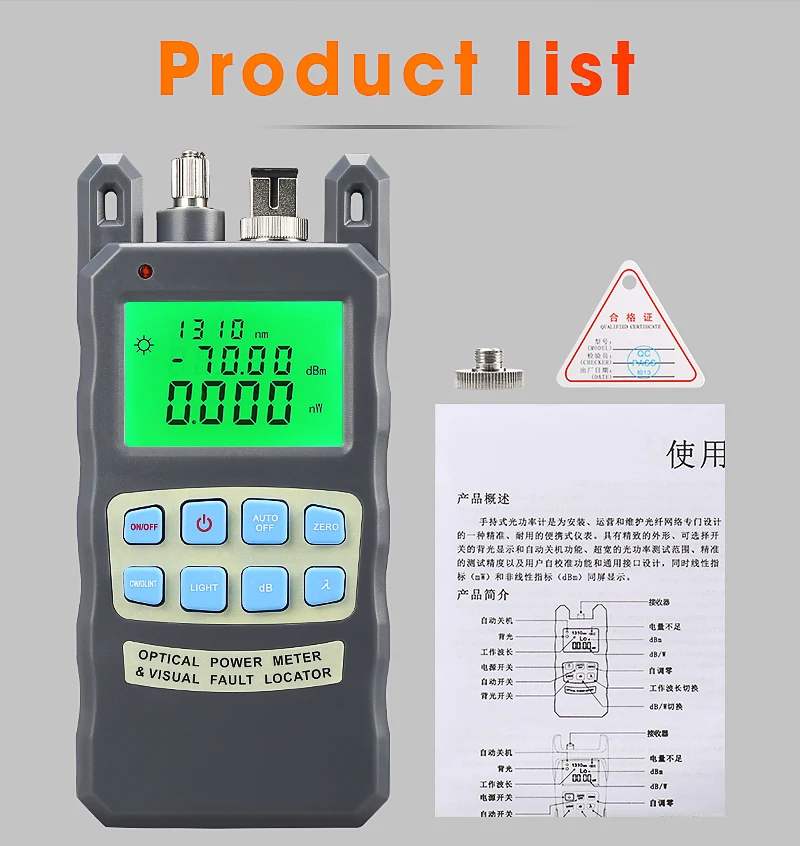 Medidor de potencia óptica todo en uno con localizador Visual de fallas probador de fibra óptica 10KM VFL