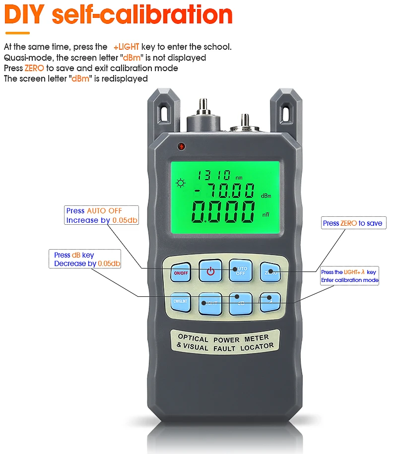 Comprar Medidor de potencia óptica todo en uno con localizador Visual de fallos, probador de fibra óptica 20KM VFL