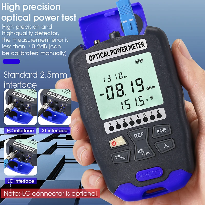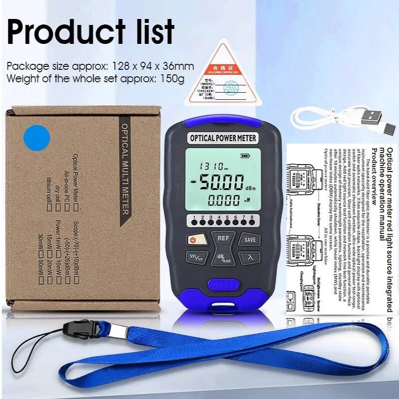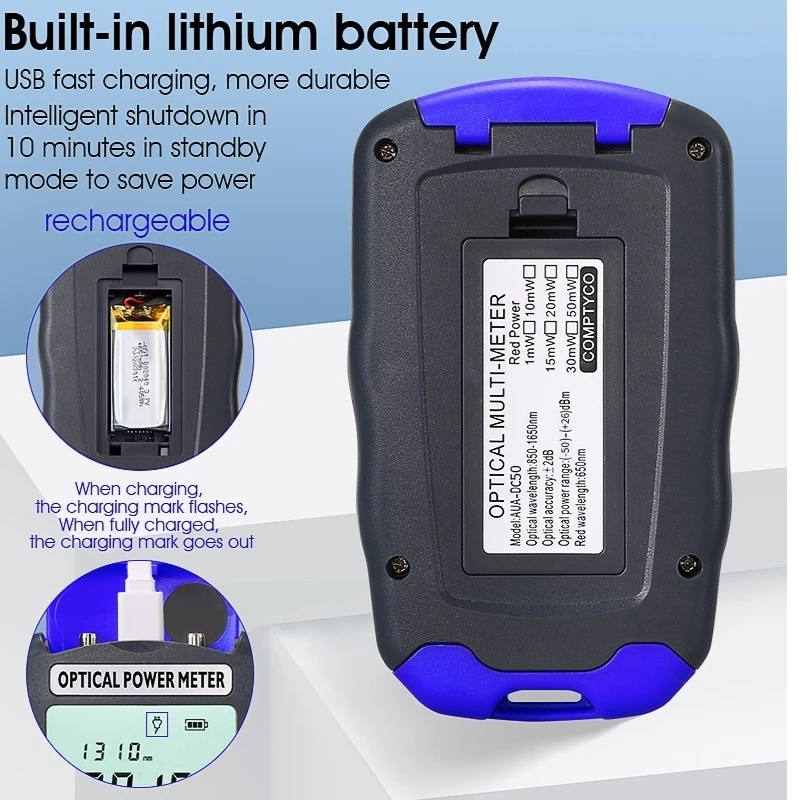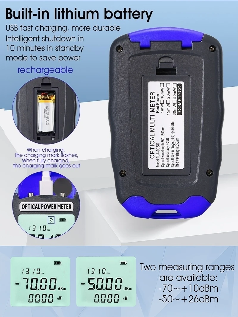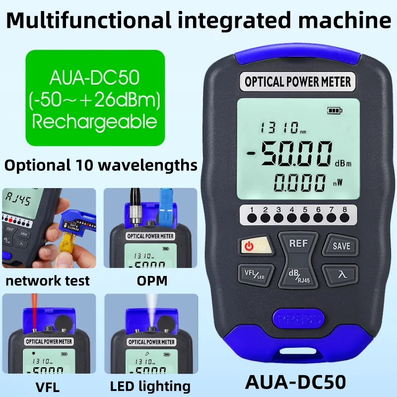 Comprar Medidor de potencia óptico AUA-DC50 FTTH 4 en 1, localizador Visual de fallos, 1-50mw, probador de fibra óptica de iluminación LED, 1-50mw