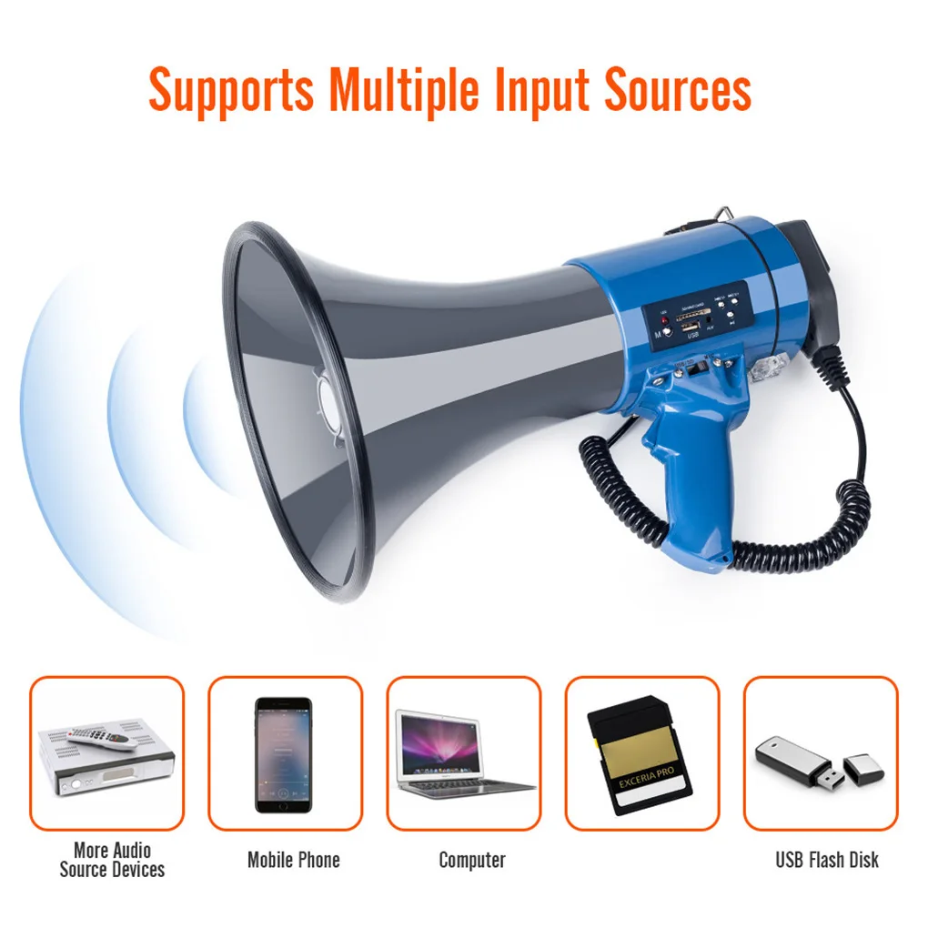 Agarre práctico: Este altavoz de megáfono viene con un diseño especial, que es muy práctico de agarrar.