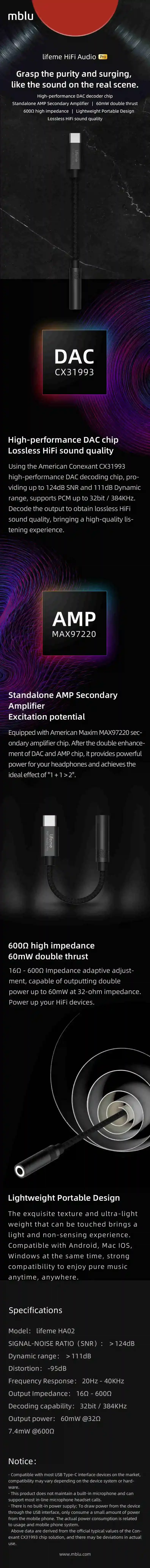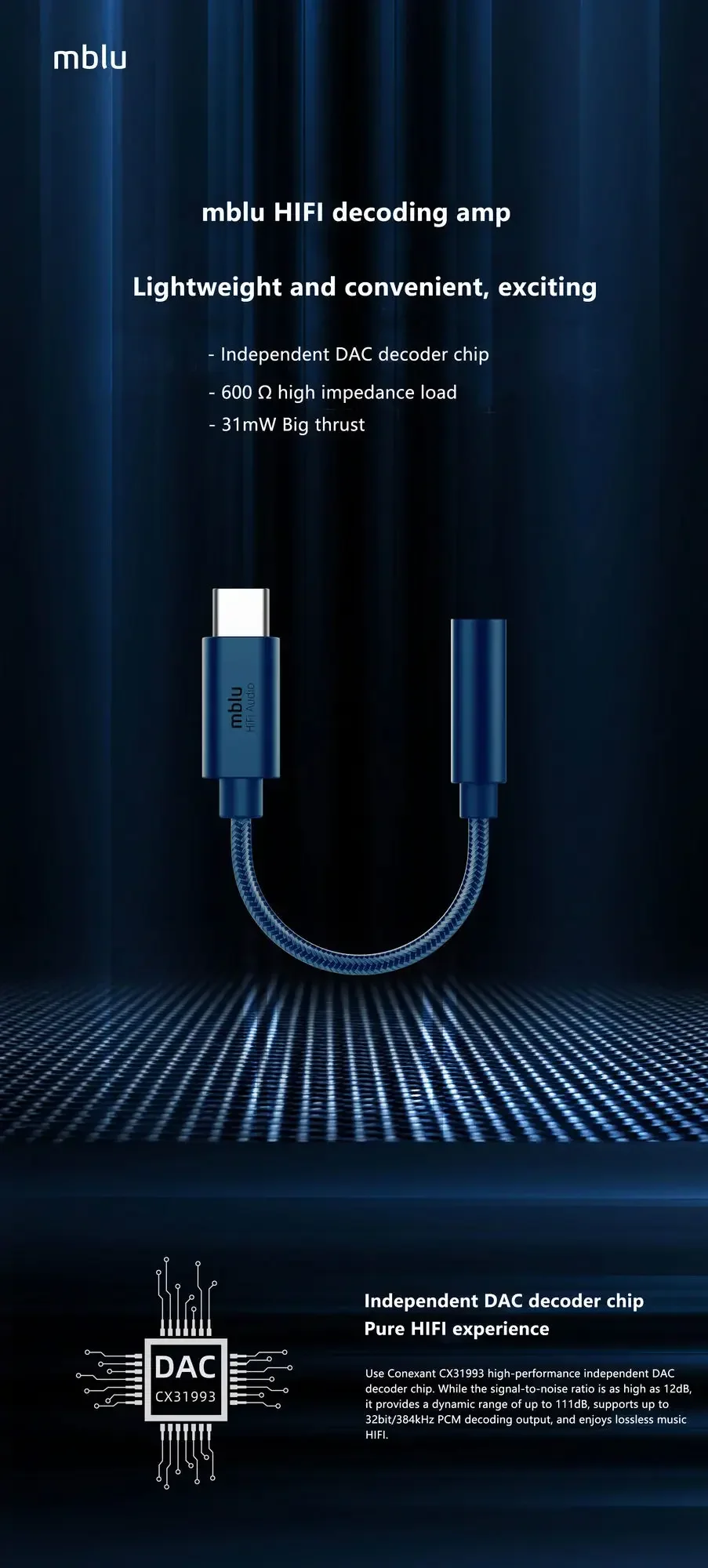 Comprar Meizu mblu HiFi DAC/mblu HiFi DAC Pro adaptador de amplificadores de auriculares Hifi tipo C a 3,5 MM adaptador de Audio Chip CX31993