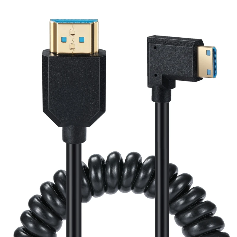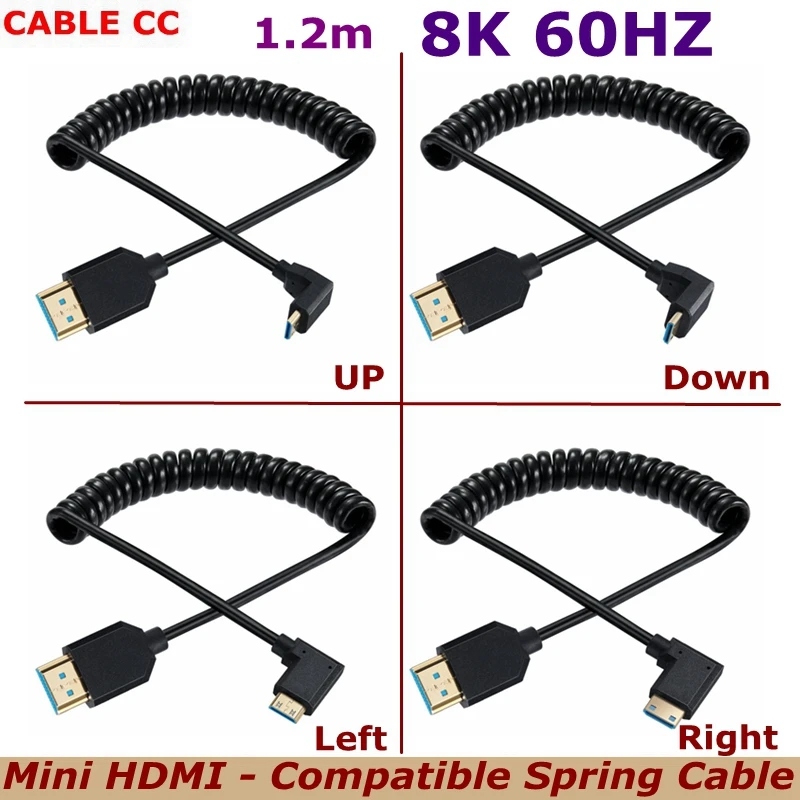 Comprar Mejor calidad nuevo 1,2 m HD 8k @ 60hz ángulo de 90 grados Mini Cable en espiral Compatible con HDMI HDTV-2.1 para ordenador TV cámara Digital