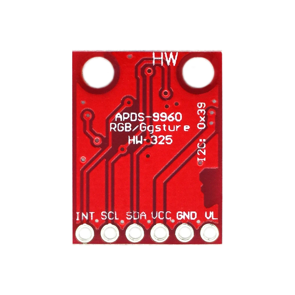 Modelo: GY-APDS9960-3.3Uso de un Chip: APDS-9960Fuente de alimentación: 3,3 vComunicación: protocolo de comunicación IICTamaño: 20mm * 15,3mmPcb de oro de inmersión de alta calidad, stockDescripción:Este es el RGB y el Sensor de gestos, de ruptura con una pequeña placa APDS-9960 incorporado que ofrece un sensor de luz ambiental y medición de color, detección de proximidad, Y detección de gestos sin contacto con este Sensor RGB y de gestos que podrá controlar. ¡Un ordenador, microcontrolador, robot y más con un simple deslizar la mano! Este es, de hecho, el mismo sensor que utiliza el Samsung Galaxy S5 y es probablemente uno de los mejores sensores de gestos del mercado por el precio.El APDS-9960 es una pequeña pieza seria de hardware con filtros de bloqueo UV e IR integrados, cuatro diodos separados sensibles a diferentes direcciones,. Y una interfaz compatible con I2C para su comodidad. Hemos roto los siguientes pines:. VL (alimentación opcional para LED IR), GND (tierra), VCC (sensor de alimentación a APDS-9960), SDA (datos I2C), SCL (reloj I2C) e INT (interrupción). Cada APDS-9960 también tiene un rango de detección de 4 a 8 pulgadas (10 a 20 cm).