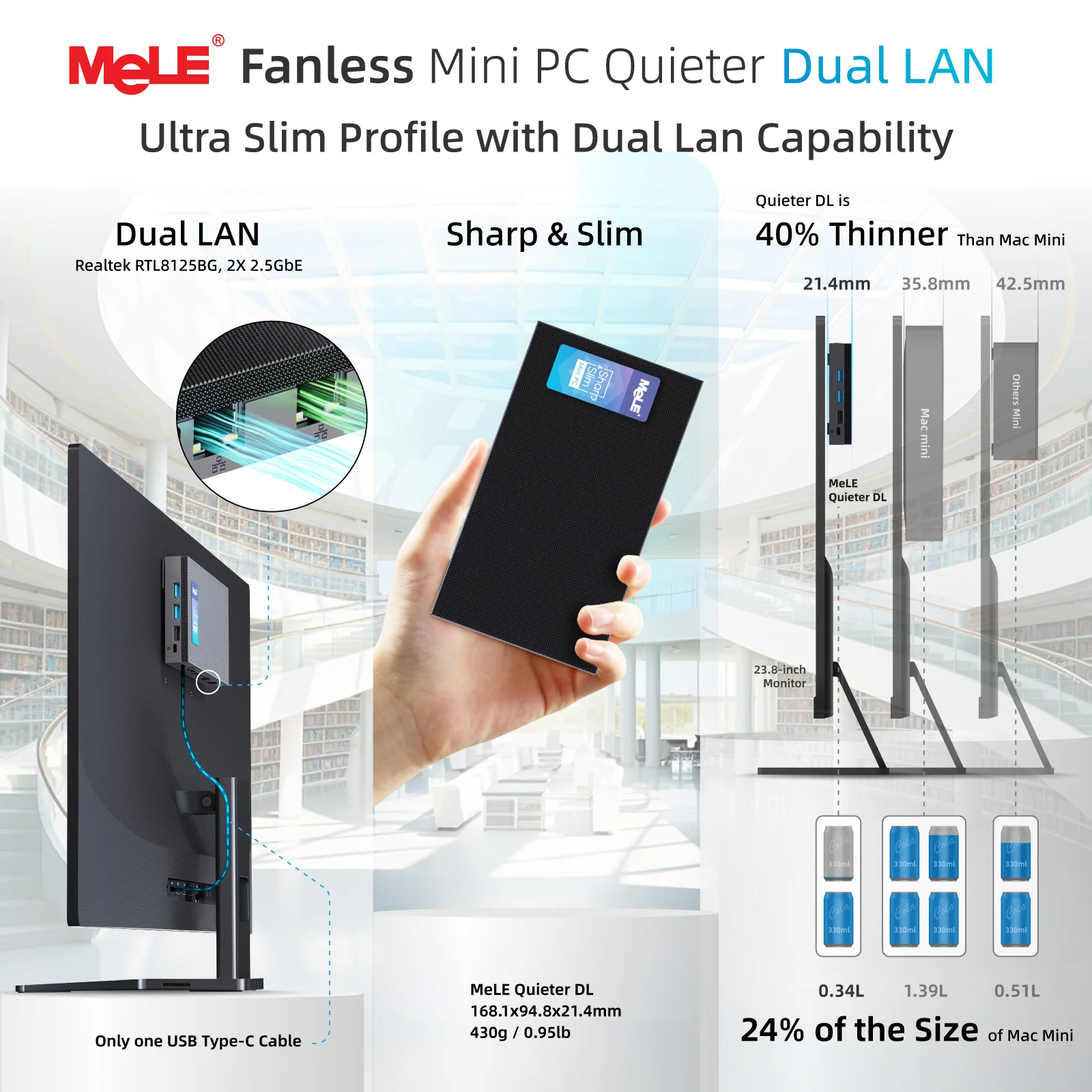 Comprar MeLE Fanless N100 Mini PC 2,5 Gigabit Ethernet Dual LAN, función completa USB tipo C, Micro computadora de escritorio QuieterDL