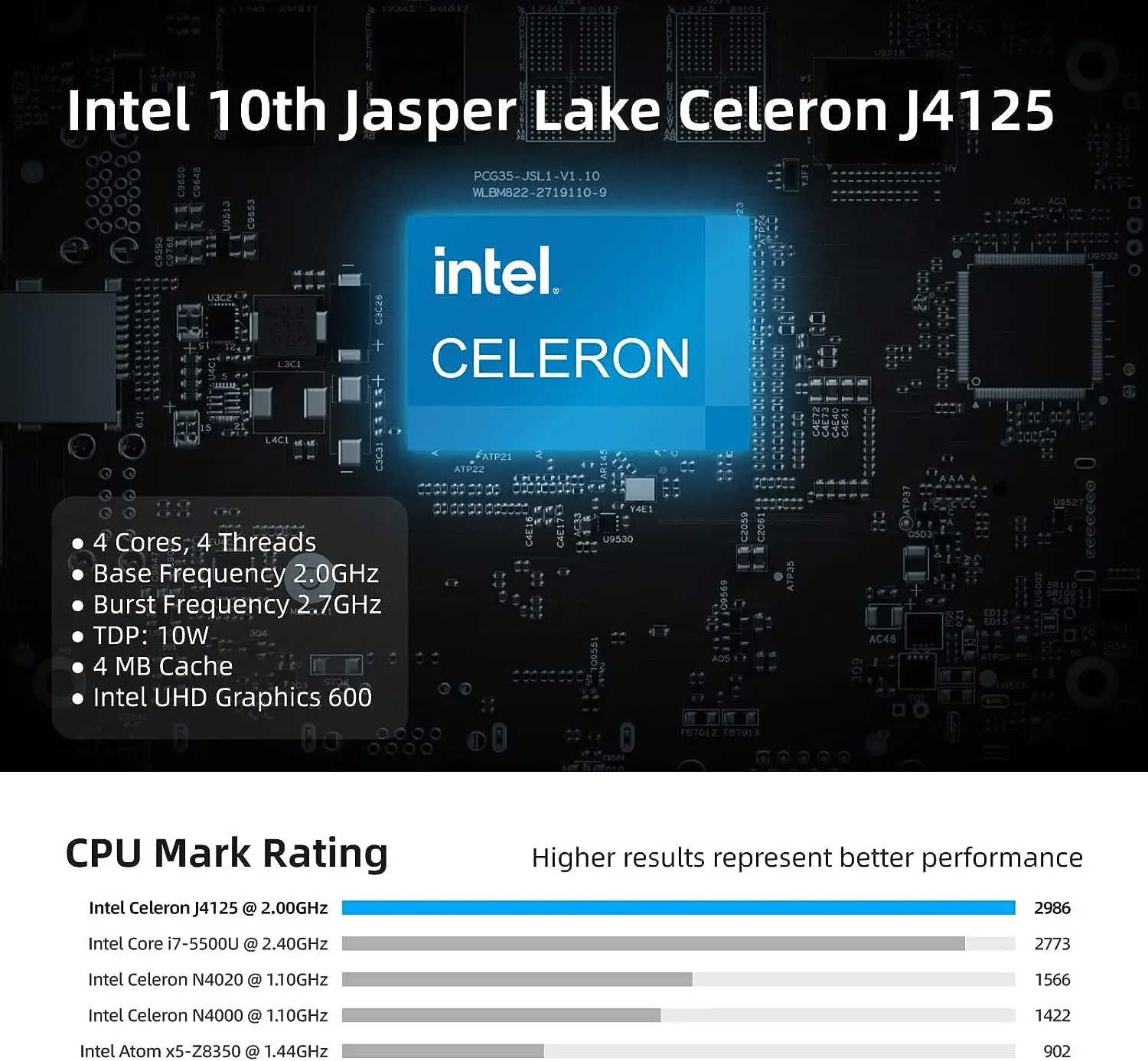 J4125 (2,0 ~ 2,7 GHz), Intel UHD Graphics 600