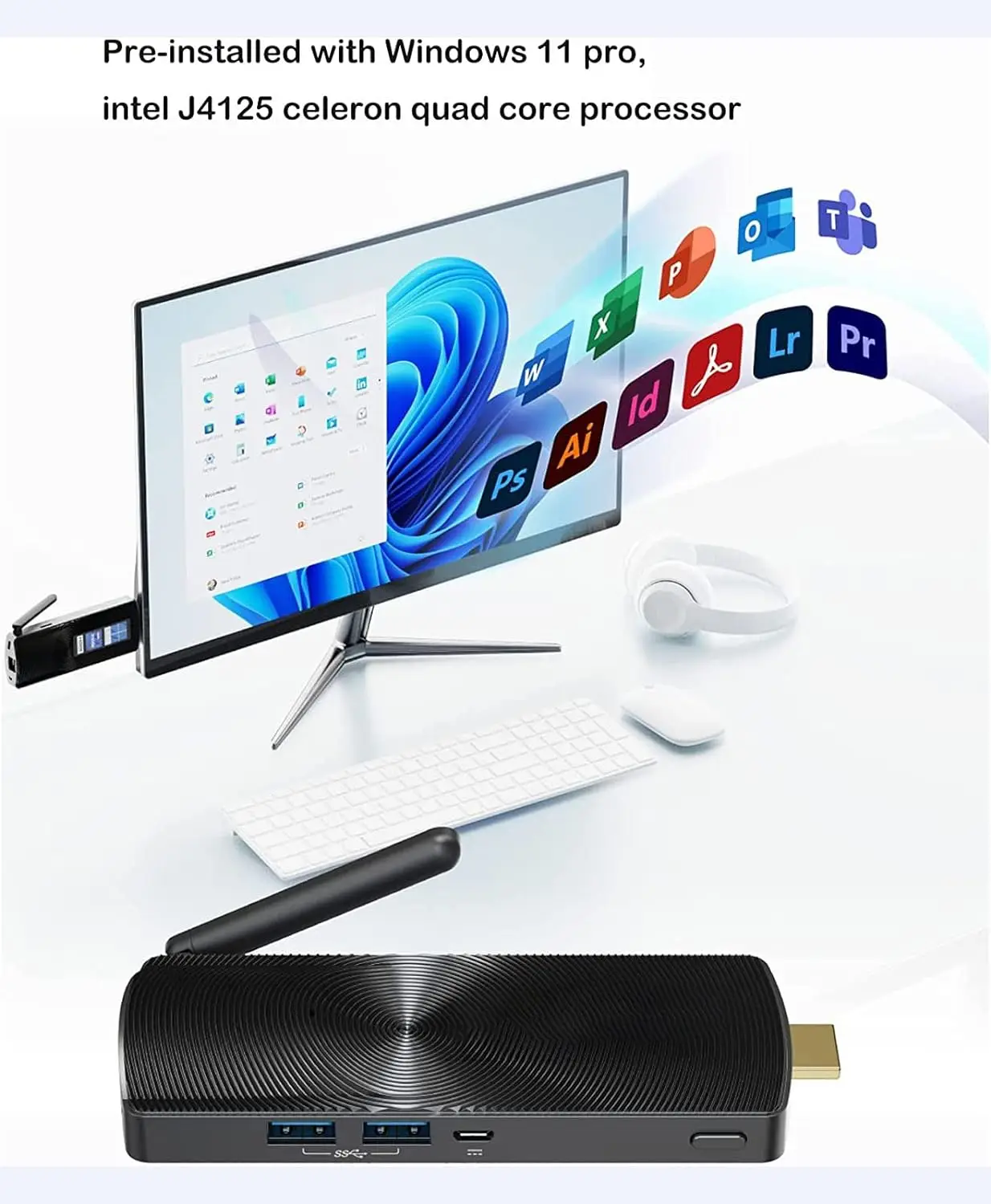 Mele Mini PC sin ventiladorPalo es un Tamaño bolsilloCon lo último En Tel Celeron Quad-CoreProcesadores y un diseño sin ventilador, PC Windows completamente funcional, preinstalado con una versión completa de Windows 11 Pro, Puede transformar cualquier televisor en una llamativa Pantalla de señalización digital y abrir un mundo de posibilidades informáticas a su hogar, oficina o cualquier otro lugar que lo necesite.