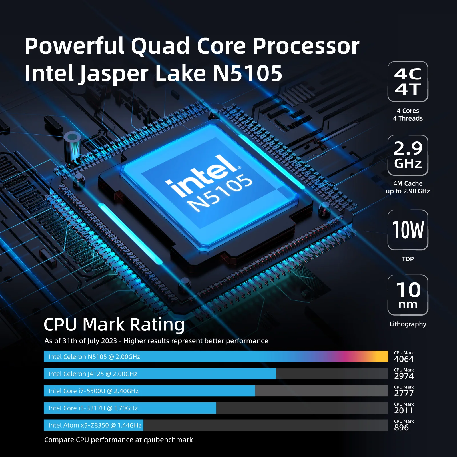 Comprar MeLE Mini PC Intel Celeron N5105 8GB 128GB Windows 11 Pro M.2 NVMe SSD QuieterHD3 computadora sin ventilador 4K HDD Gigabit Ethernet PXE