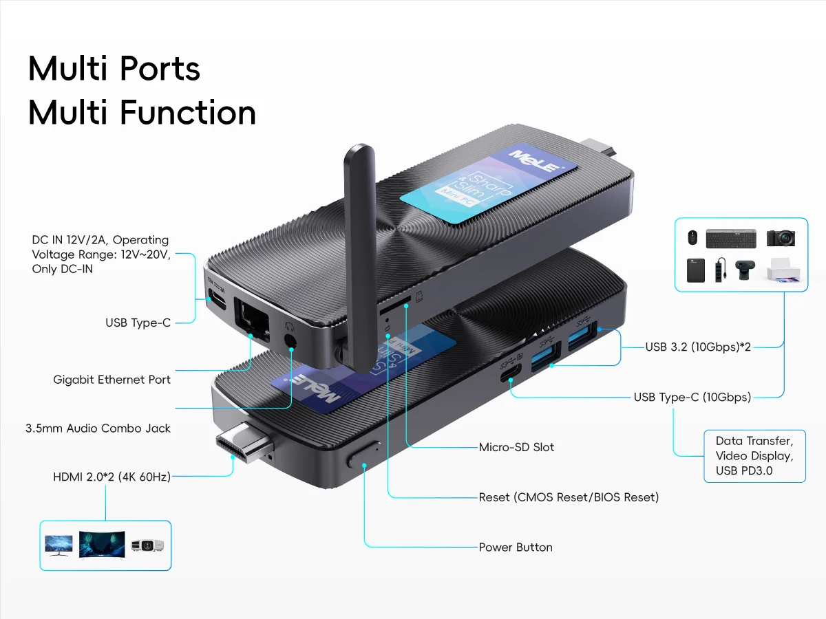 Me temía que el conjunto de puertos sería el mismo que para los modelos antiguos. Pero los chinos no engañan, los modelos con n100 usb-c están en su lugar. Lo conecté a un monitor 2k vía USB-C y también recibe energía de él. No noto ningún retraso en términos de rendimiento. Me alegra que sea silencioso, sin ventiladores. El cuerpo es un radiador de refrigeración cálido, pero no caliente, puedes tocarlo tranquilamente con tu mano. Un pequeño hdmi mosaico pegado a los ojos, una tradición de modelos anteriores. También quiero insertar una antena externa en ella, pero el estuche es de metal y aparentemente no funciona. Quería que fuera lo más compacto posible, así que dejé de usar esta opción.