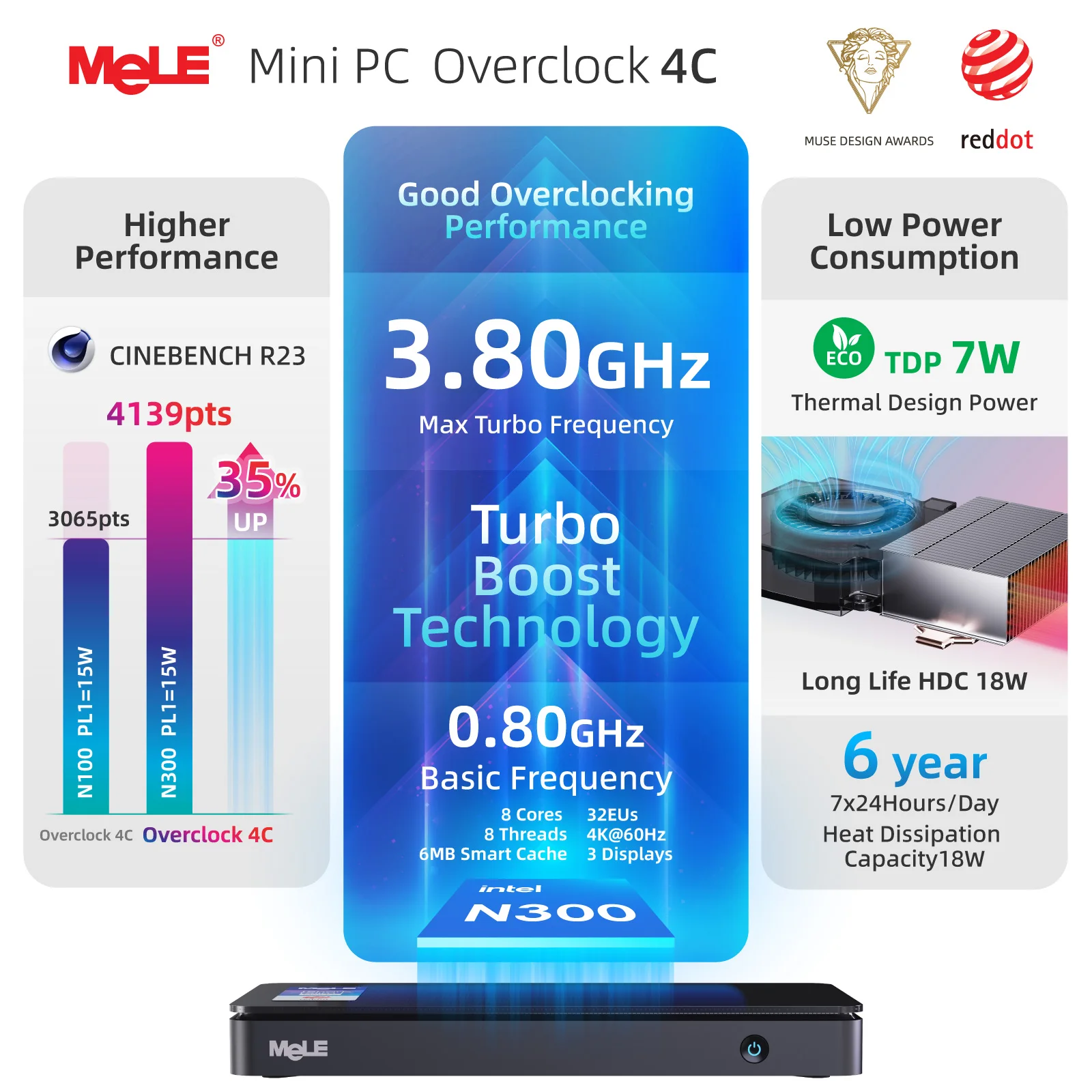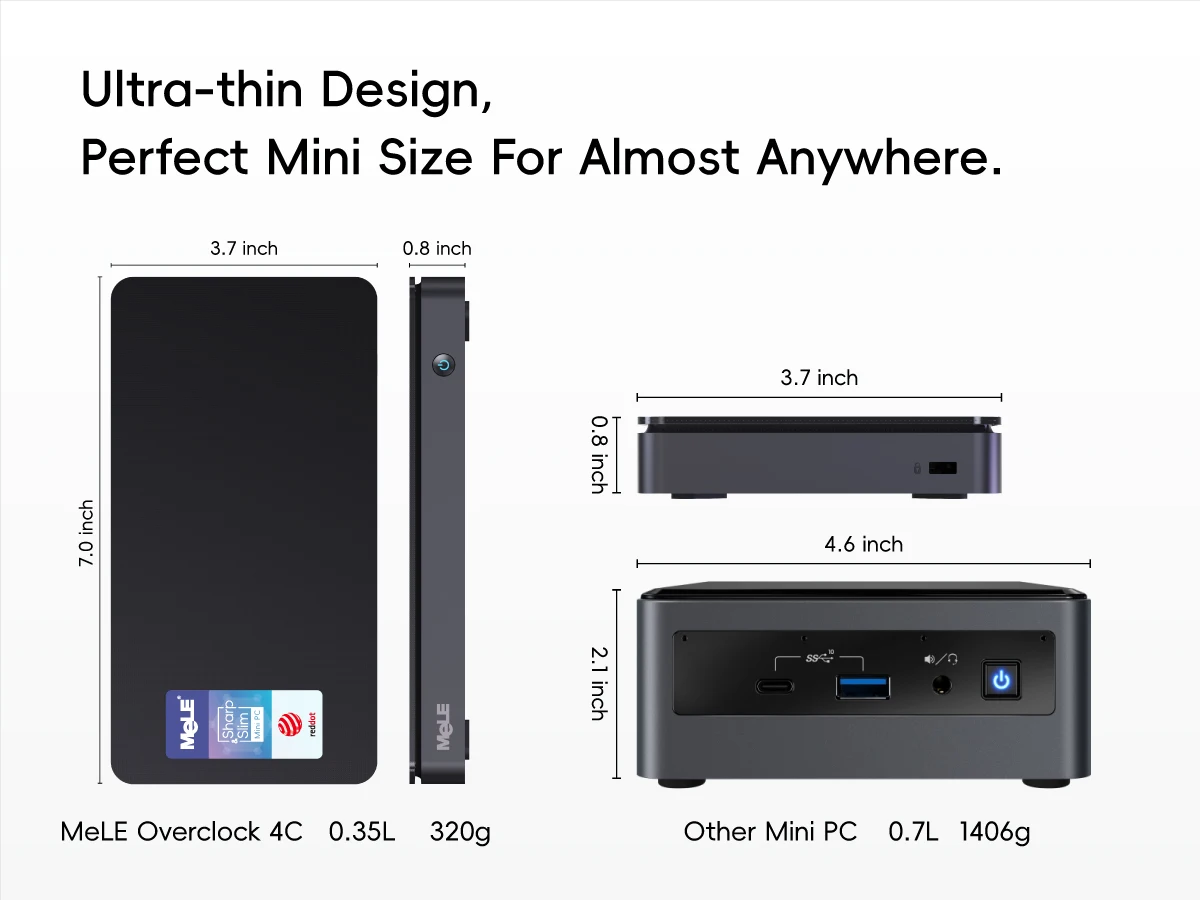 MeLE Mini PC ultrafina: honrada con el premio 2024 Red Dot, combina un diseño elegante y un rendimiento potente en una forma compacta.