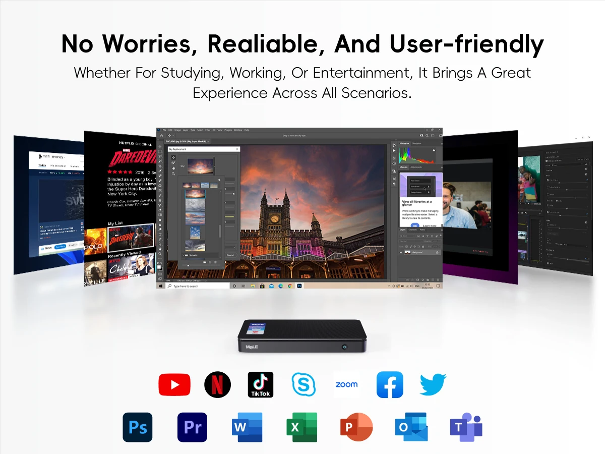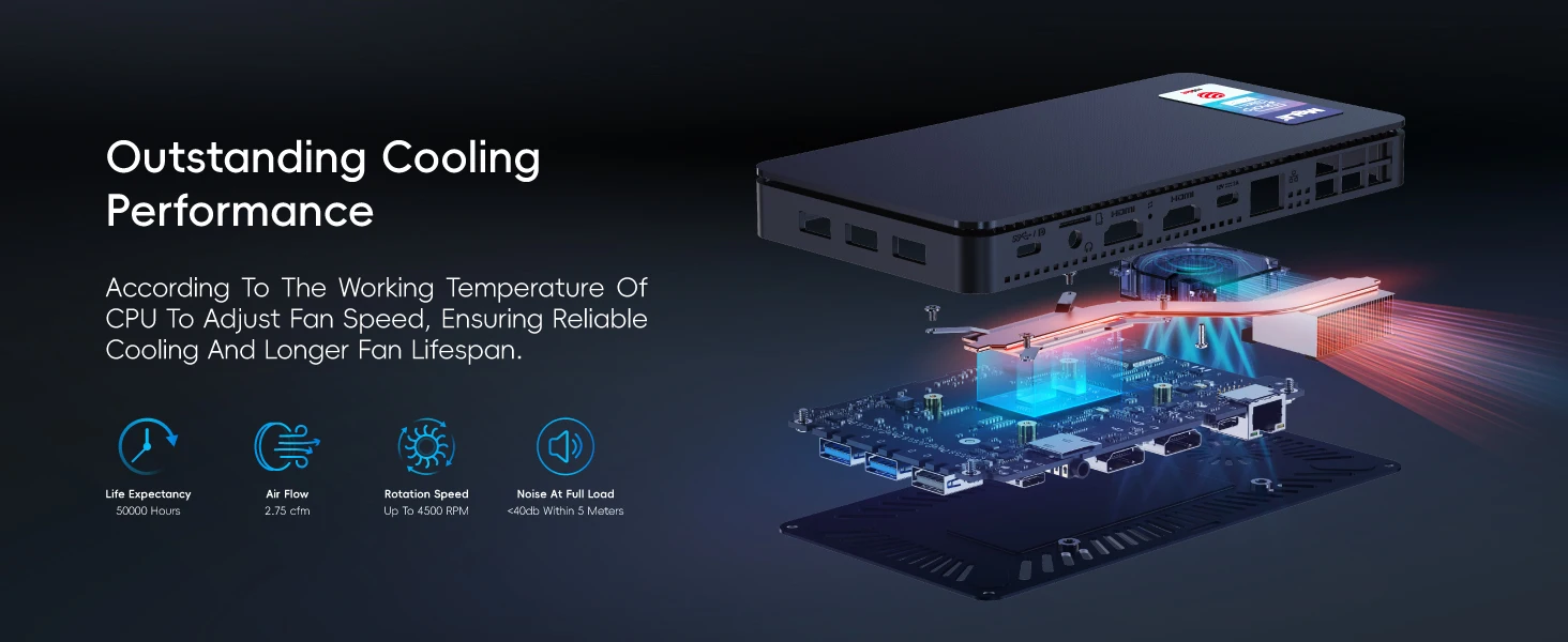 Experimente un rendimiento potente con la mini PC, que cuenta con el último procesador Alder Lake-N100 de 12.a generación.Su tecnología de litografía de 10 nm y sus gráficos UHD brindan imágenes nítidas.Con un TDP de hasta 15 W y una velocidad turbo de hasta 3,4 GHz, este dispositivo de bajo consumo es perfecto para oficinas ligeras y uso doméstico diario.