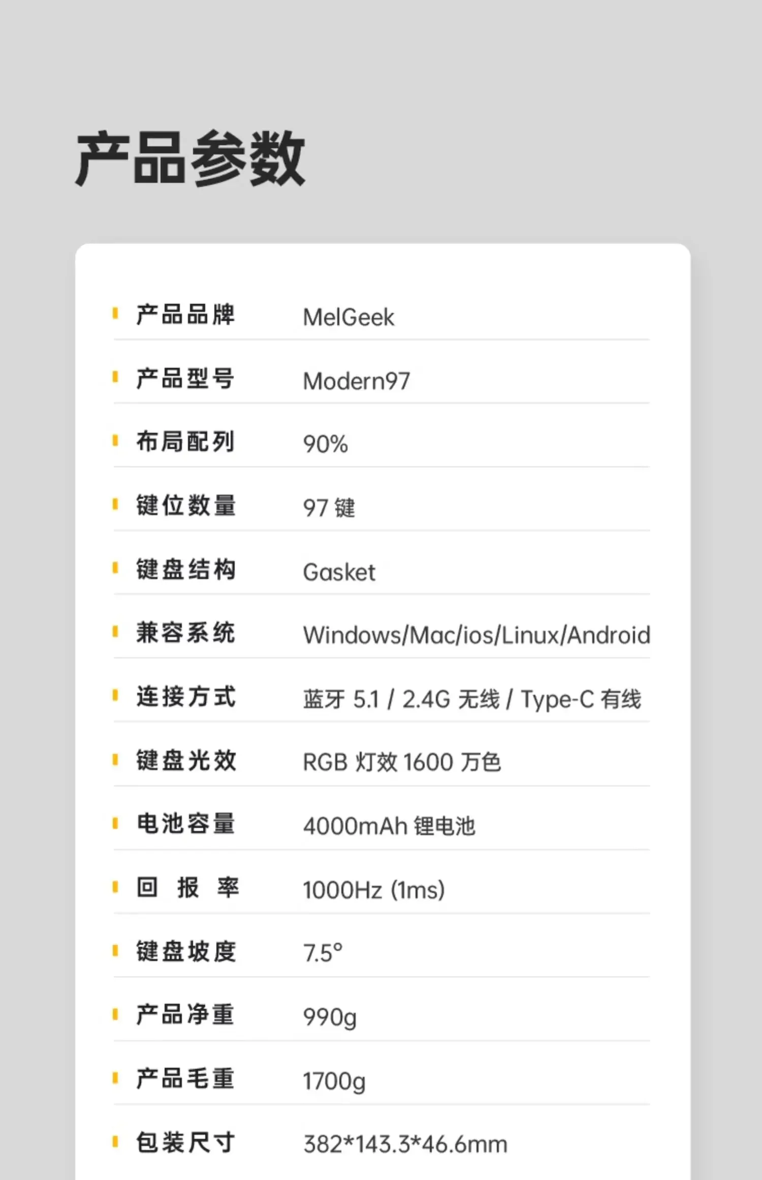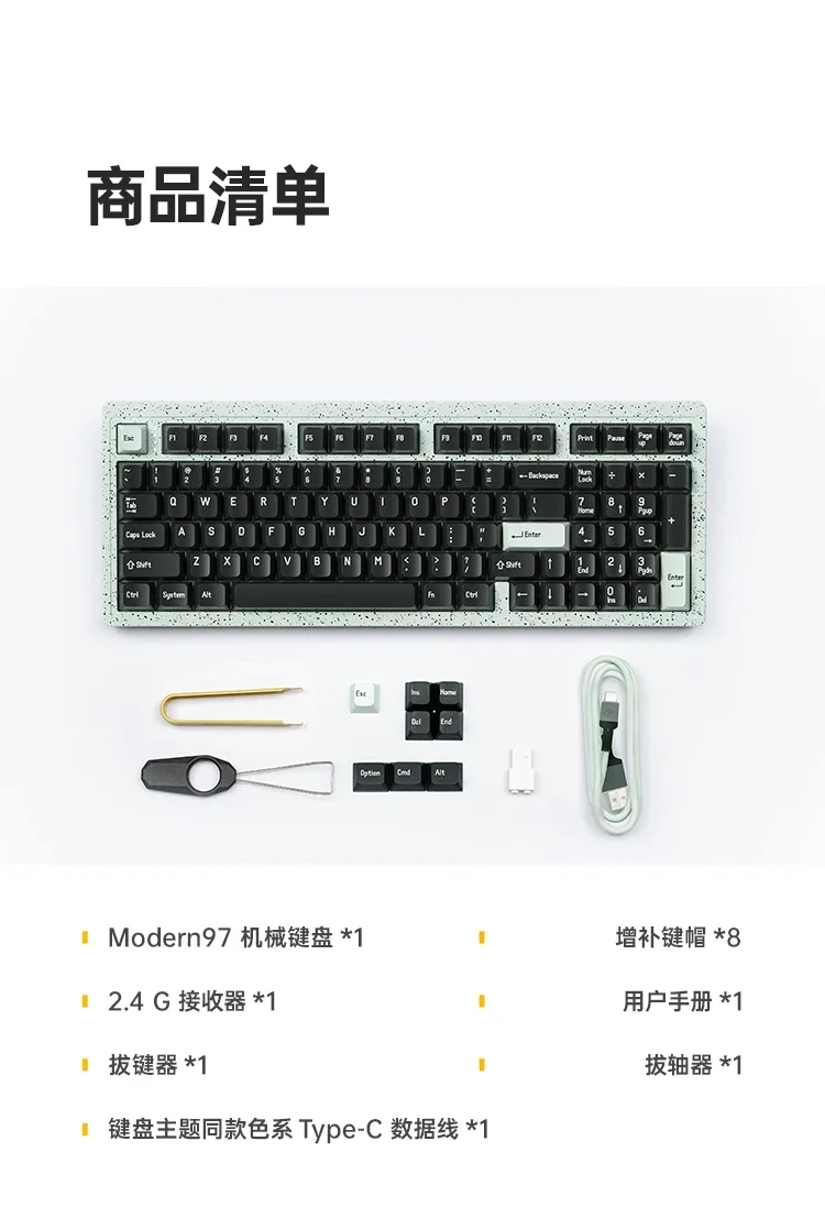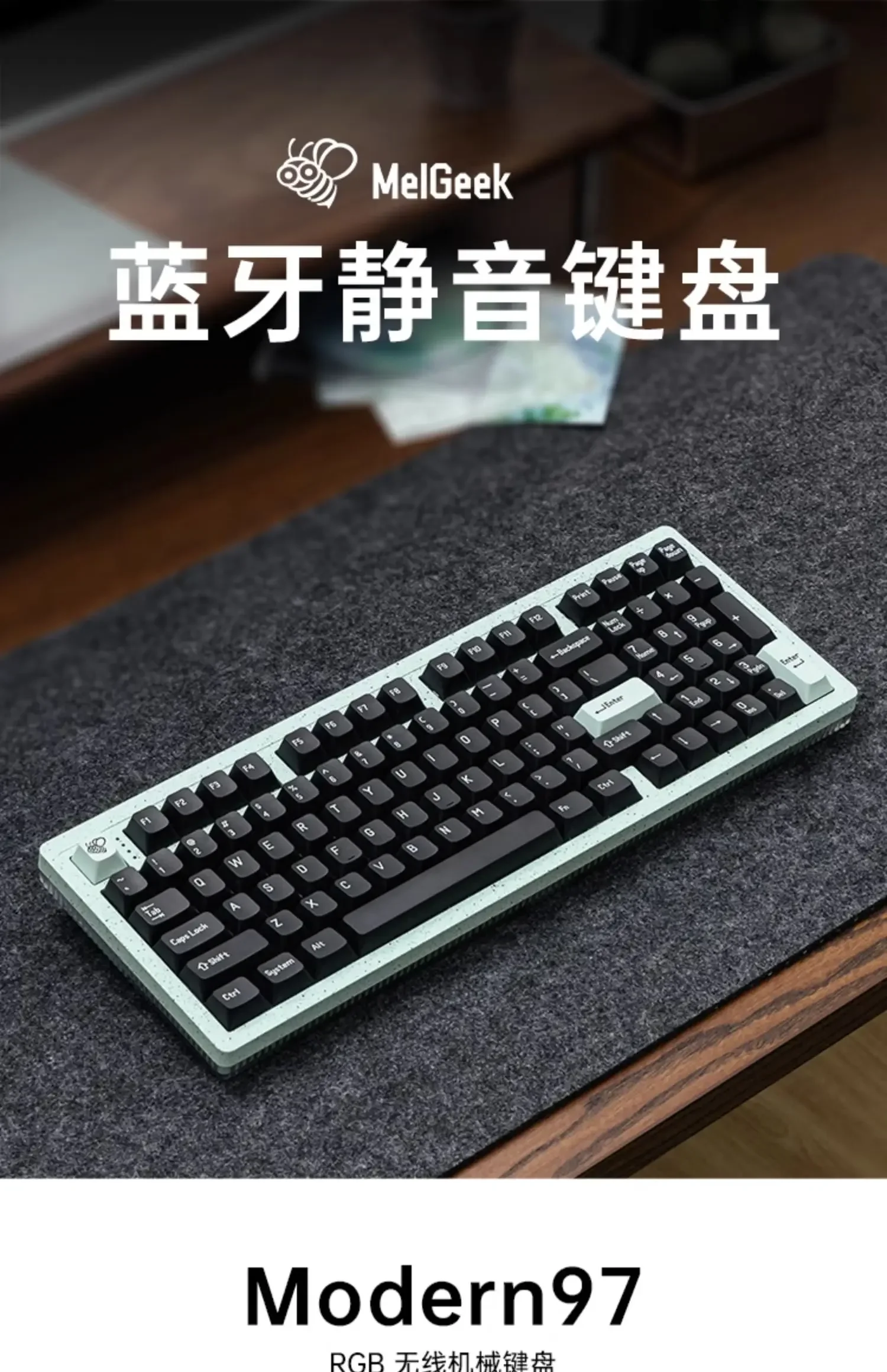 Comprar MelGeek-Teclado mecánico personalizado, periférico inalámbrico con tres modos, intercambio de calor, RGB dinámico, junta de diseño 90%, Modern97
