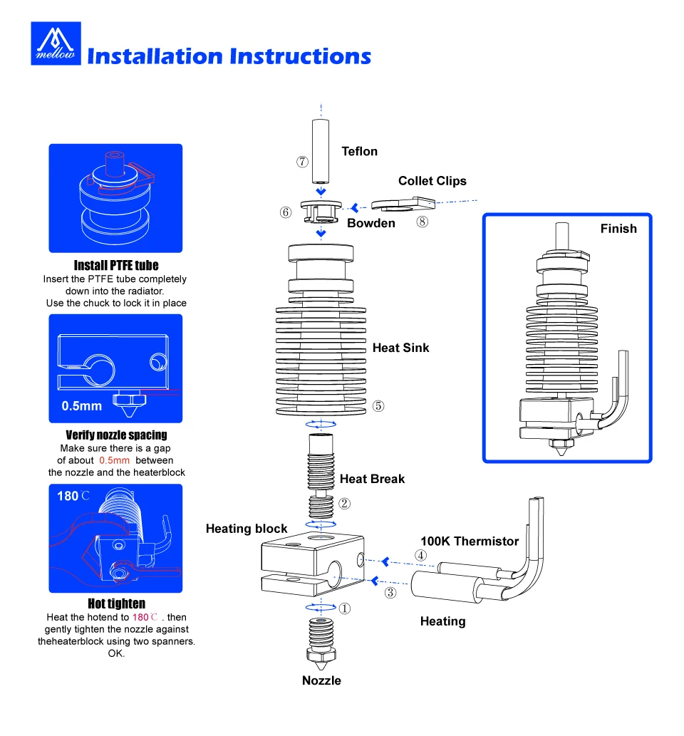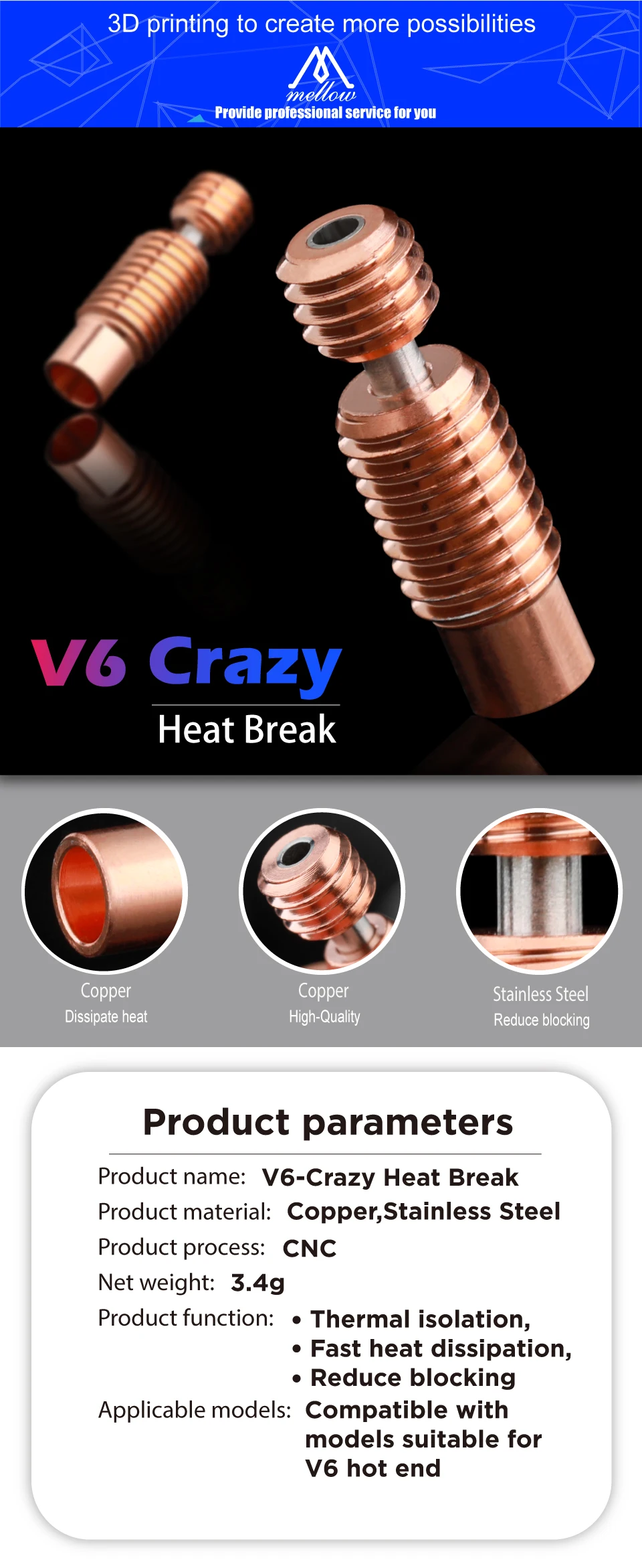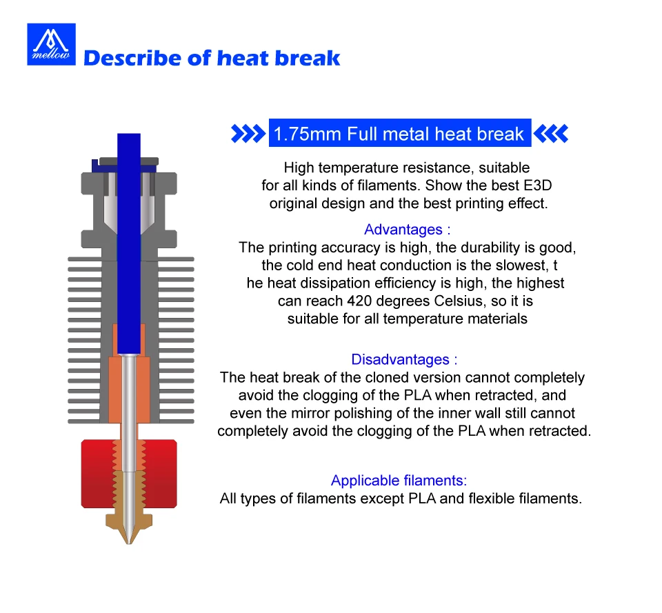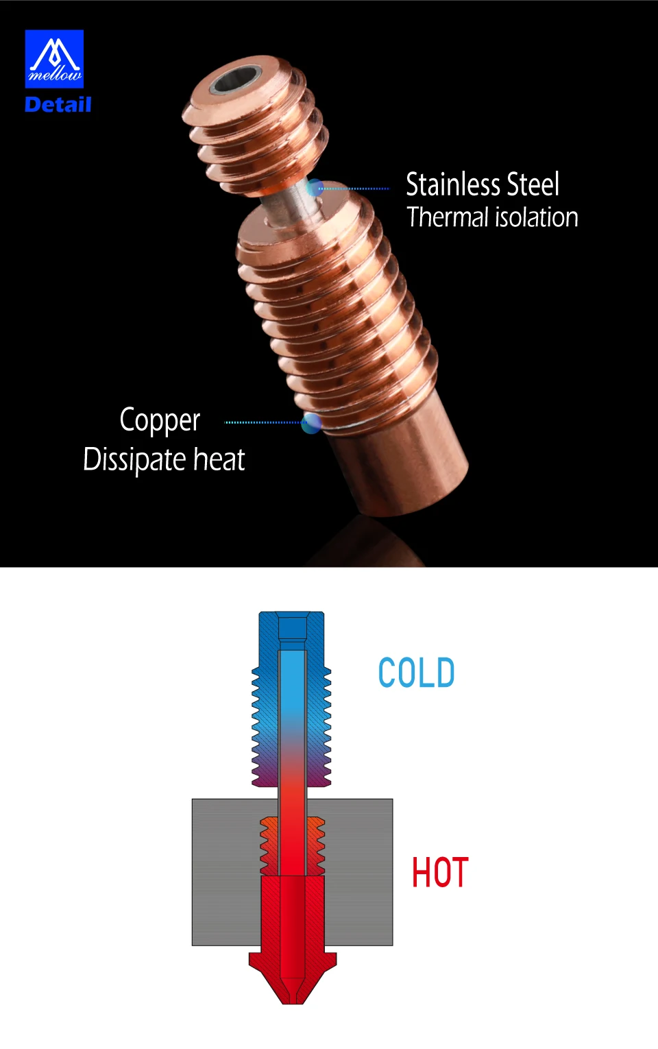 El uso de dos materiales metálicos para generar una rotura de calor es mejor que el rendimiento de la barrera térmica del V6 original y mejorar la calidad de la impresión.Esta idea proviene del equipo de mosquitos y los saludamos.
