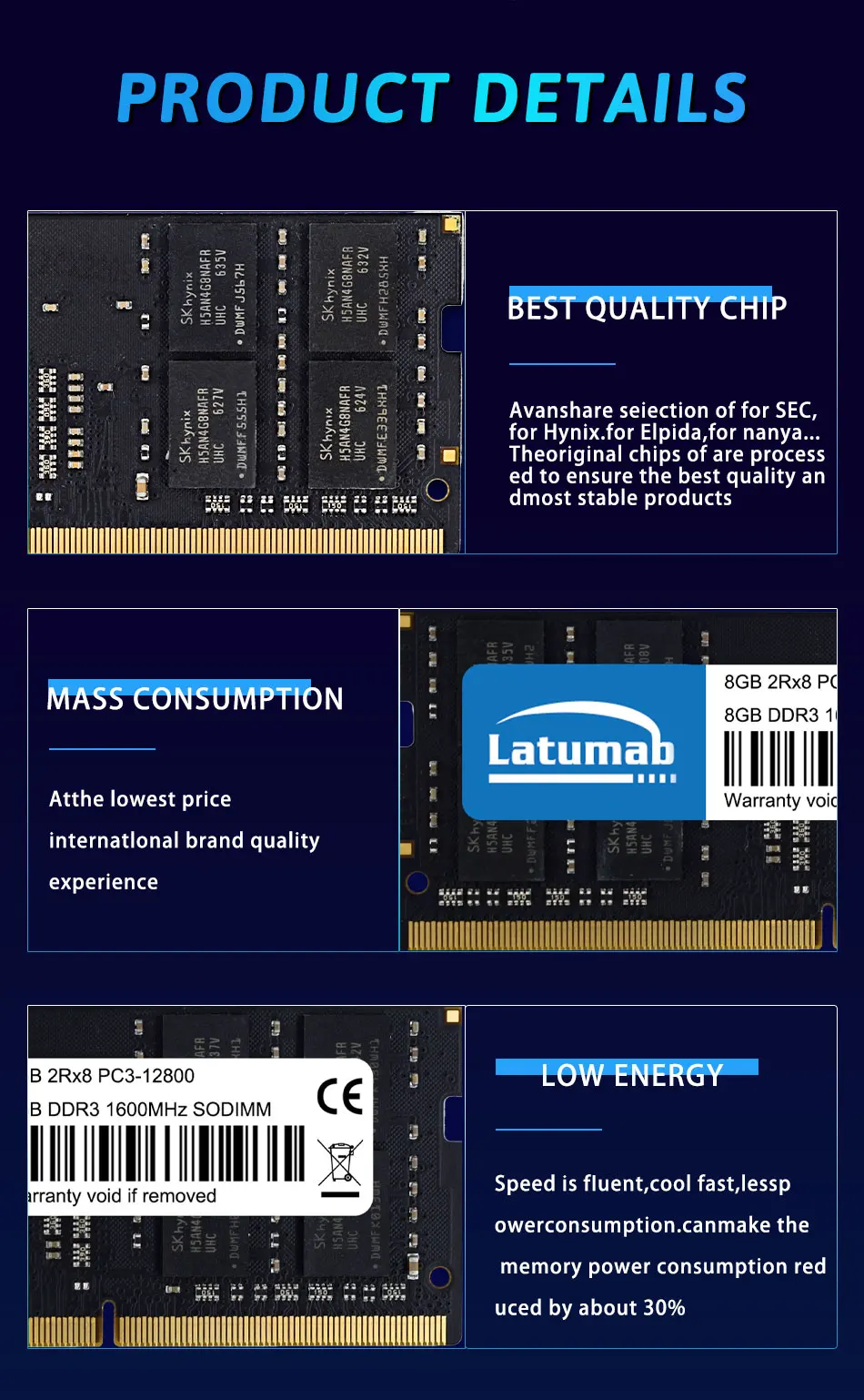 Comprar Memoria DDR3 DDR3L RAM 4GB 8GB 1600MHz 1333 1866MHz SODIMM Laptop Memory 204Pins 1,35 V 1,5 V PC3-12800 14900 10600 Notebook RAMs