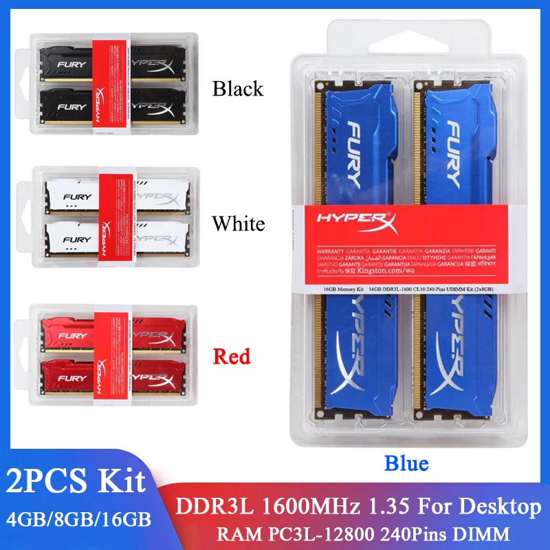 Memoria DDR3L RAM 4GB 8GB 1600MHz 8GB (2x4GB) 16GB (2x8GB) kit RAM 1600MHz Memoria de escritorio RAMs 240Pins 1,35 V DIMM PC3-12800 HyperX Fury Módulo de memoria