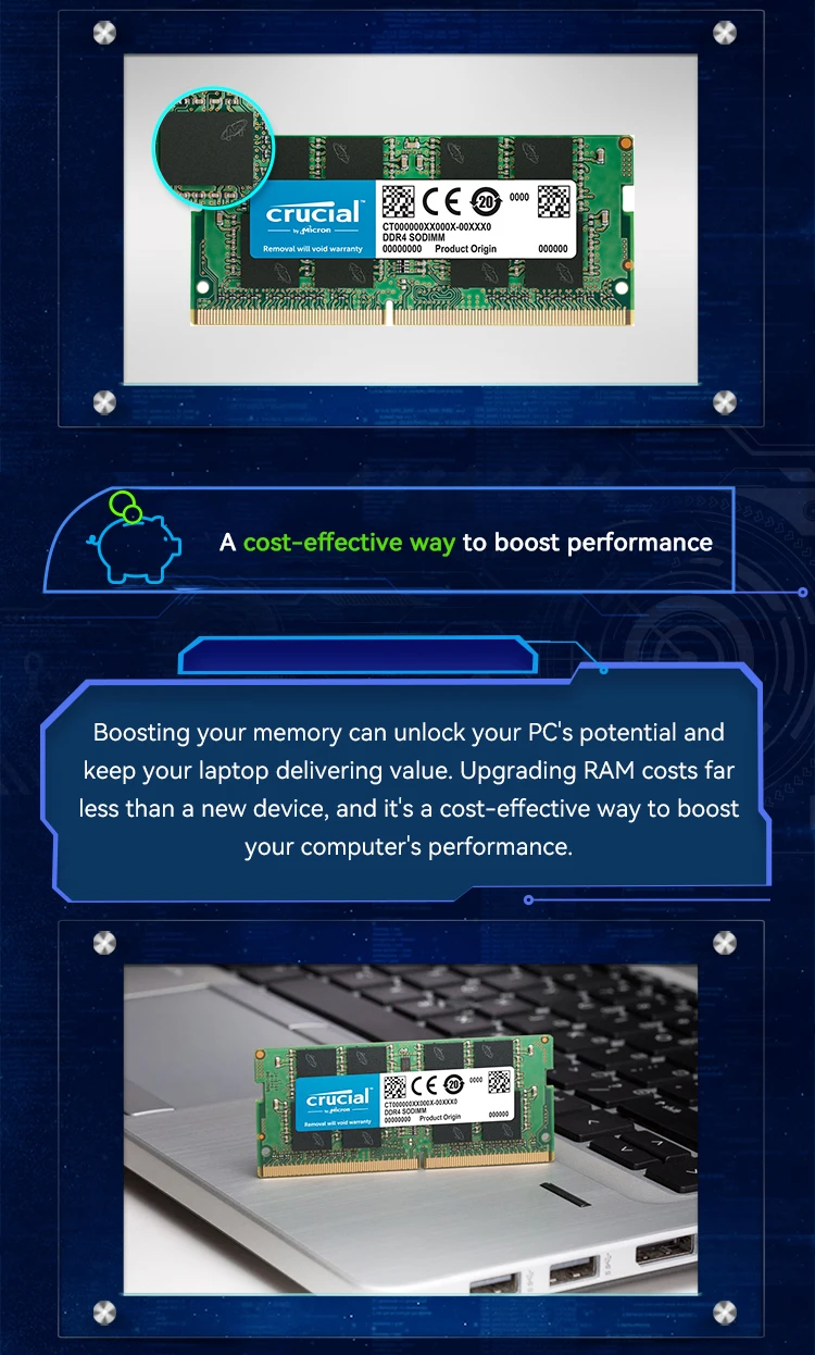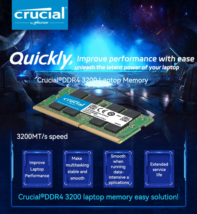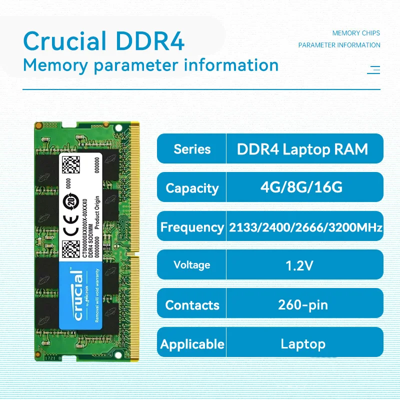 Comprar Memoria DDR4 para ordenador portátil Crucial 2133 2400 2666 3200MHz 4GB 8GB 16GB 1,2 V RAM para ordenador portátil memoria SO-DIMM de 260 pines para ordenador portátil