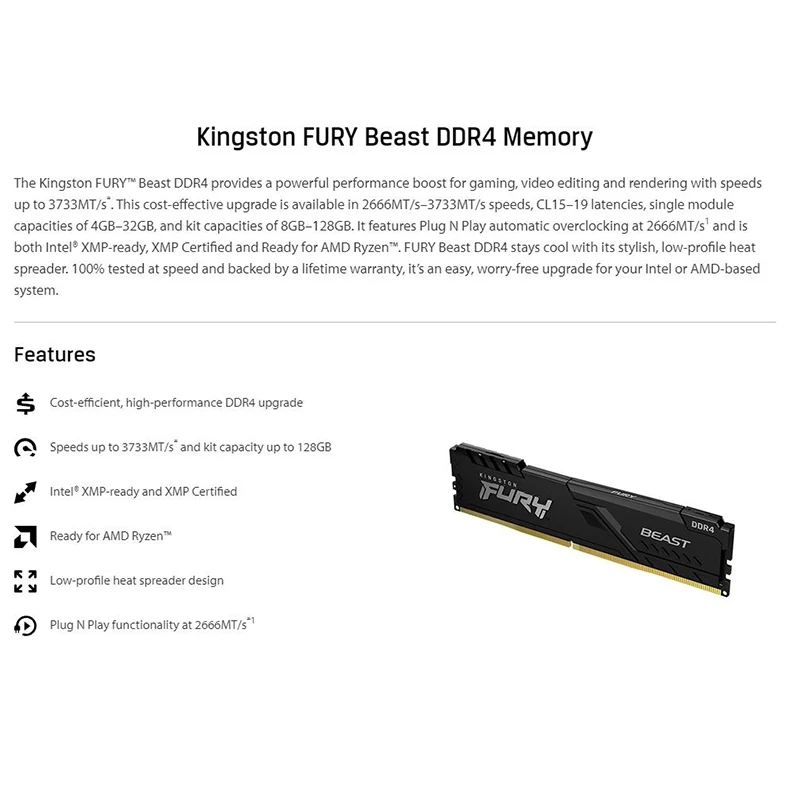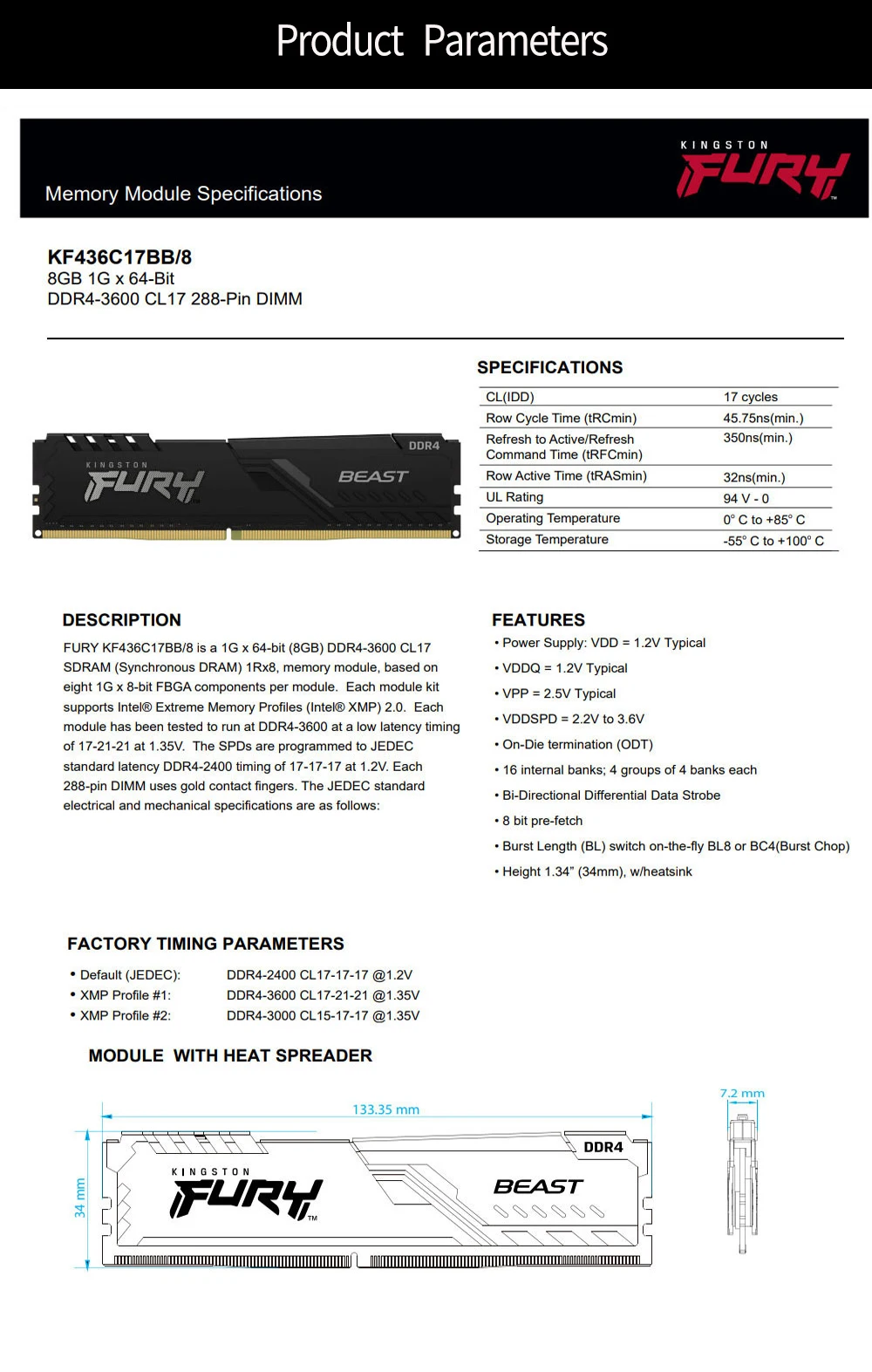 Comprar Memoria de escritorio de Kingston RAM DDR4 FURY BEAST 16GB 8GB 3200MHz 3600MHz Dimm Memoria Rams PC4 Soporte de memoria para juegos de la placa base