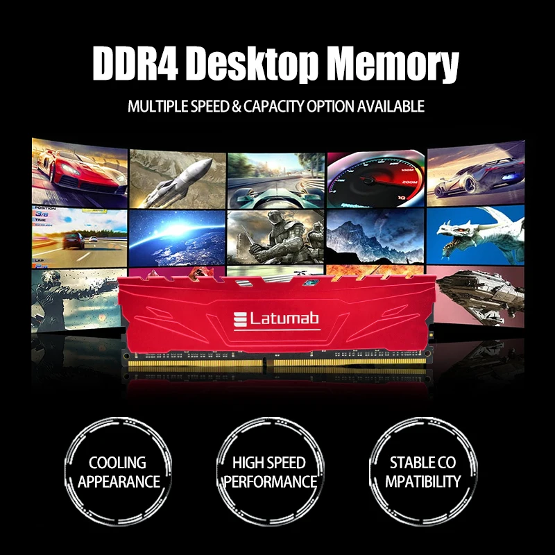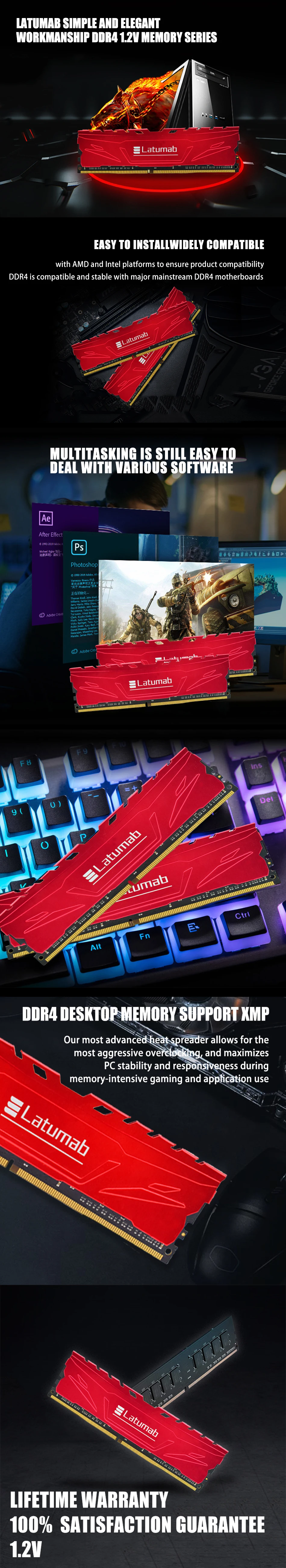 Latumab Memoria DDR4 RAM 4GB 8GB 16GB 3200MHz 2400MHz 2133MHz 2666MHz Memoria de escritorio para juegos 288Pin PC4-25600 PC4-21300 PC4-19200 PC4-1700 1.2V DIMM RAM Módulo de memoria para PC