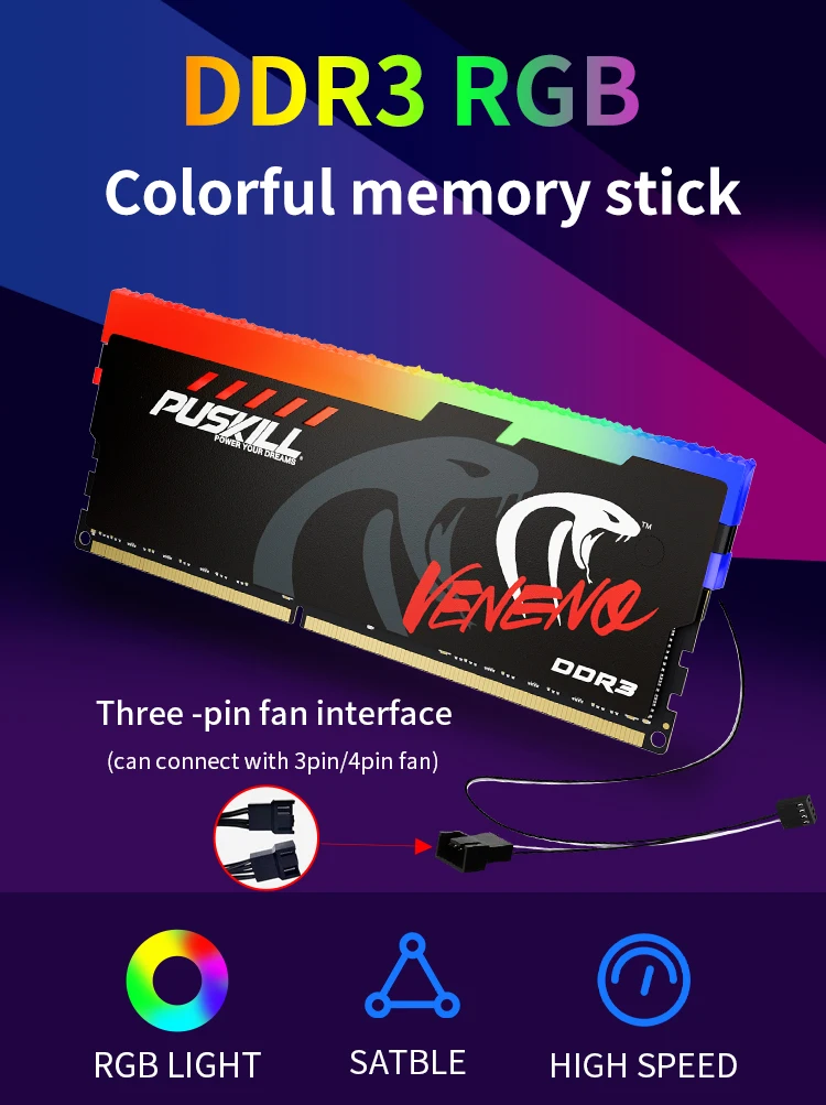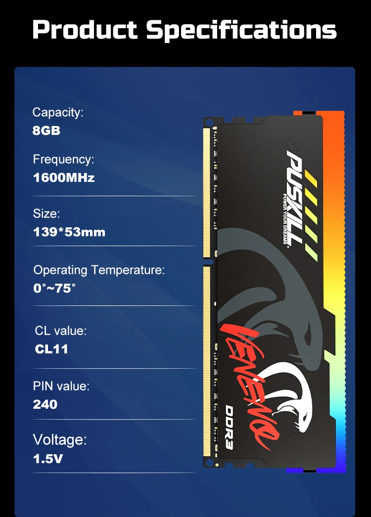 • DIMM de doble canal :El PUSKILL Memory RGB DDR3 8GBx2 1600 MHz 12800S Udimm Dual Channel DIMM Desktop Memory Ram tiene dos canales de memoria, lo que significa que puede manejar más datos simultáneamente y mejorar el rendimiento.