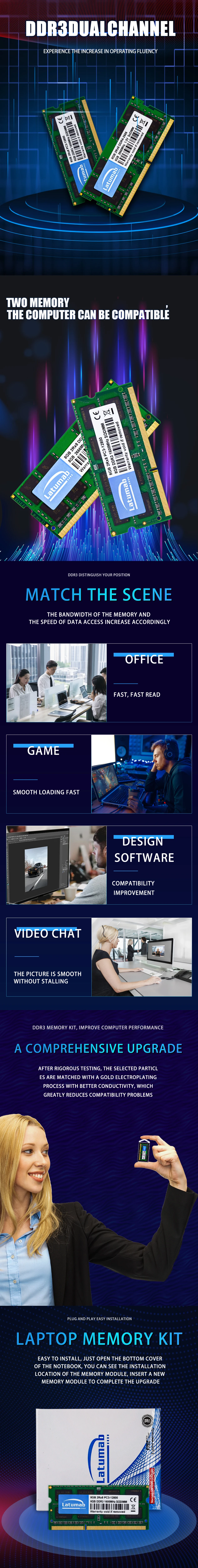 Memoria RAM DDR3 4GB 8GB 1600MHz 1333MHz Memoria portátil Módulo de memoria SODIMM DDR3L DDR3 4 pines 10600 V 1,5 V 1,35 MHz Módulo de memoria