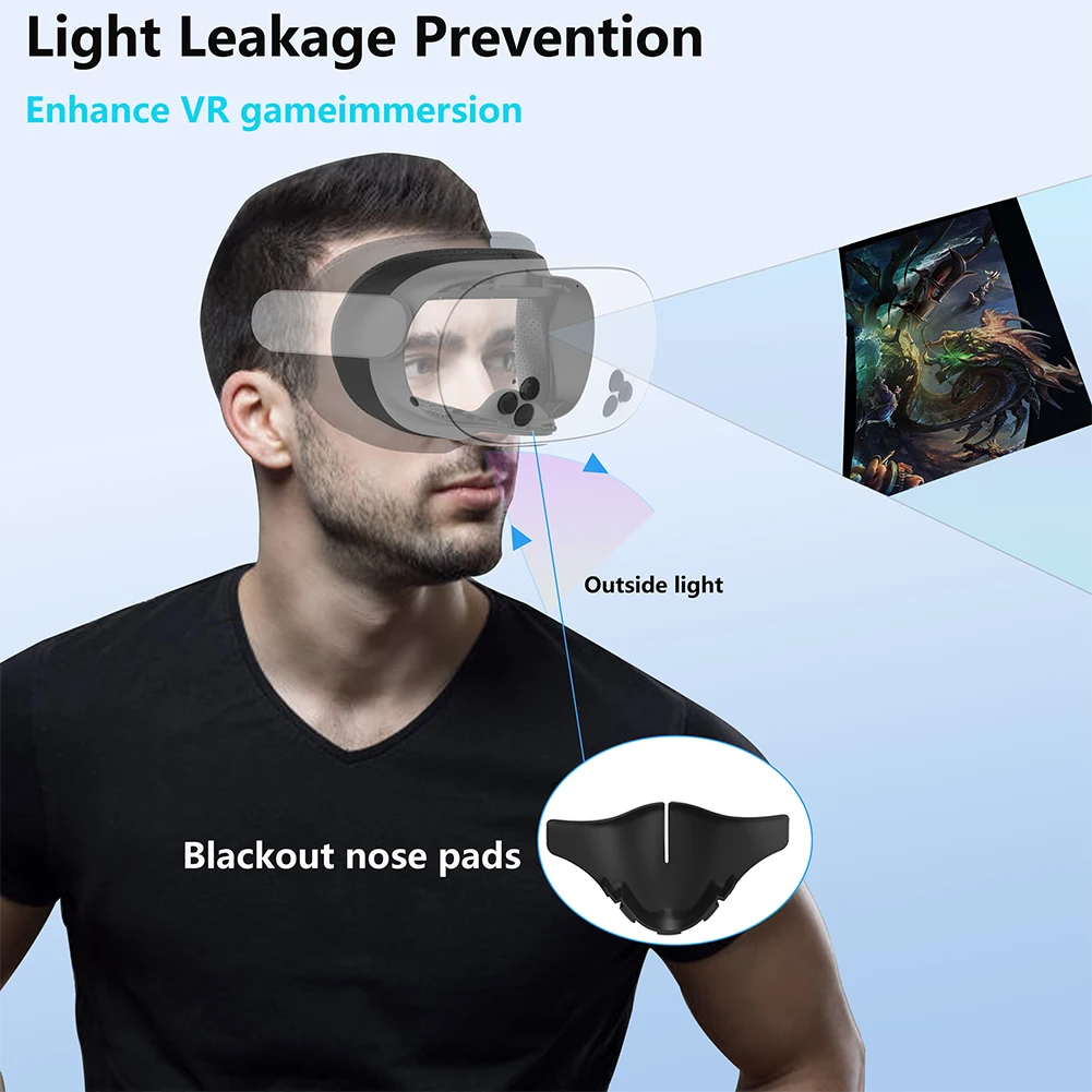 4.Almohadilla nasal que bloquea la luz:Esta almohadilla nasal está diseñada para abordar las fugas de luz, especialmente alrededor del puente nasal, lo que mejora la experiencia inmersiva de realidad virtual.Hecho de material suave y transpirable, reduce la presión para un uso cómodo a largo plazo.