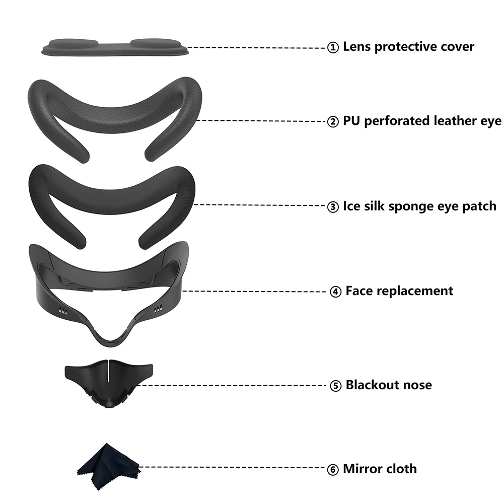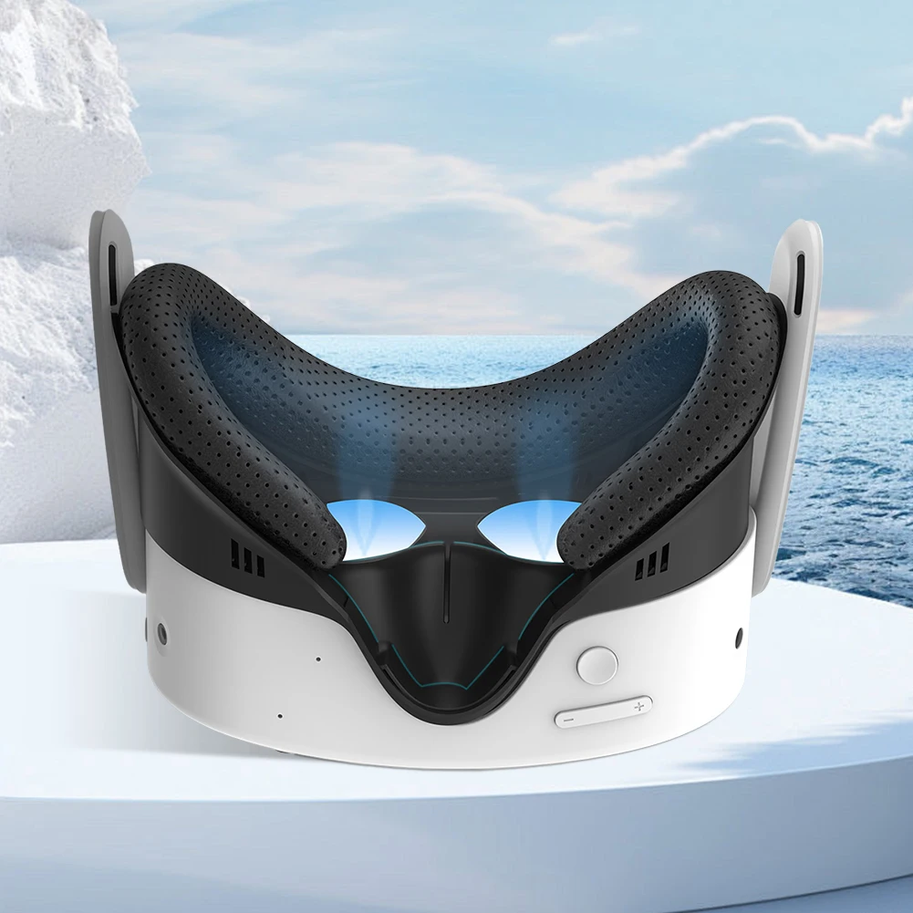 3.Ocular refrescante de espuma de seda helada:Experimente un ajuste refrescante y transpirable con el ocular de espuma de seda helada.Proporciona un excelente bloqueo de la luz para mejorar la inmersión en realidad virtual y es fácil de limpiar, lo que garantiza higiene y comodidad durante el uso prolongado.
