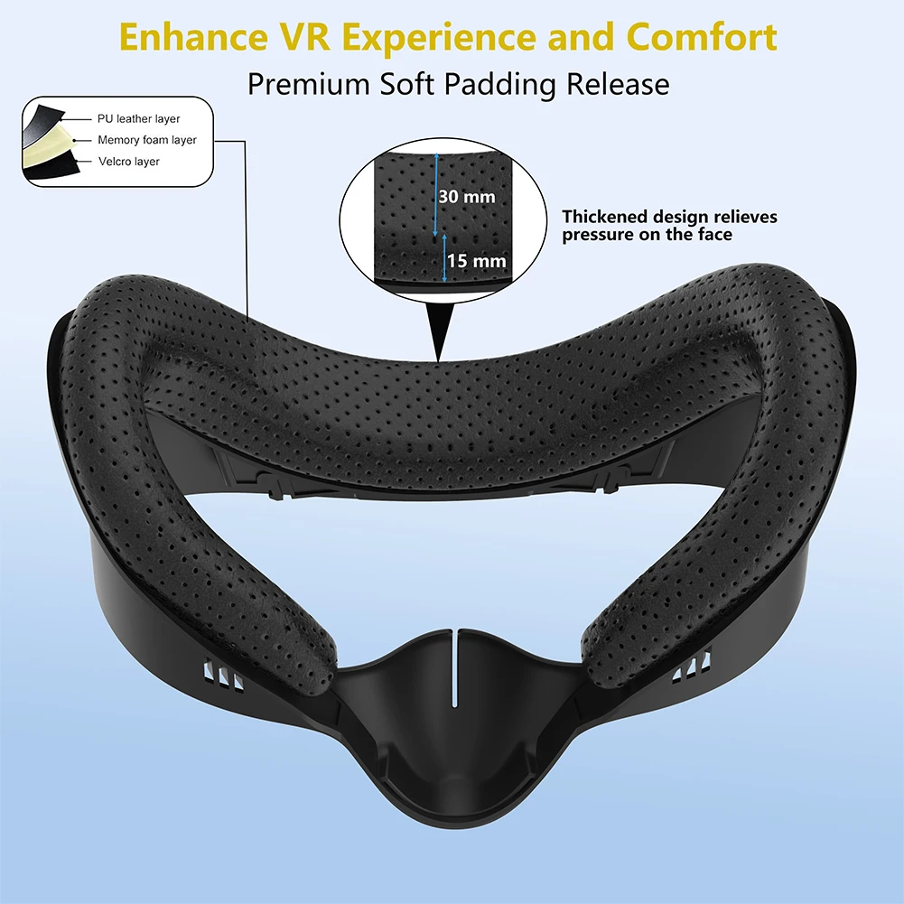 1.Ajuste y comodidad mejorados:Diseñado específicamente para Meta Quest 3S, el soporte de repuesto con cubierta frontal ensanchada garantiza un ajuste perfecto.Su amplio diseño reduce las fugas de luz, mejorando la inmersión, mientras que los materiales suaves y transpirables alivian la presión facial.