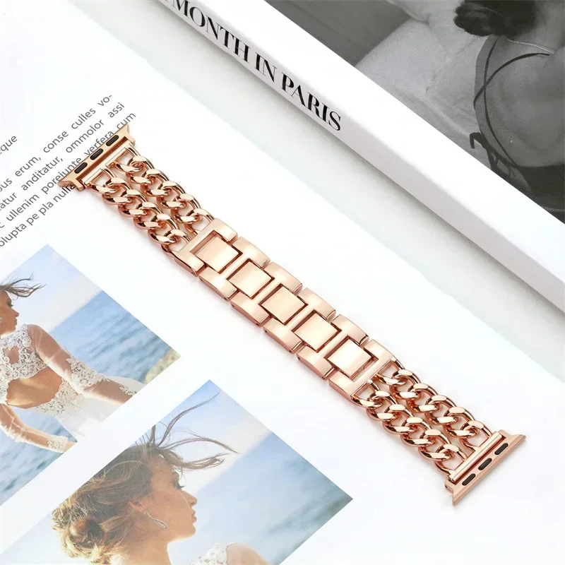 Correa de borla de Metal para Apple Watch Ultra 2, 49mm, 40mm, 44mm, 41mm, 45mm, enlace de pulsera de diseñador, IWatch Series 9 8 7 SE 6 5 4 3
