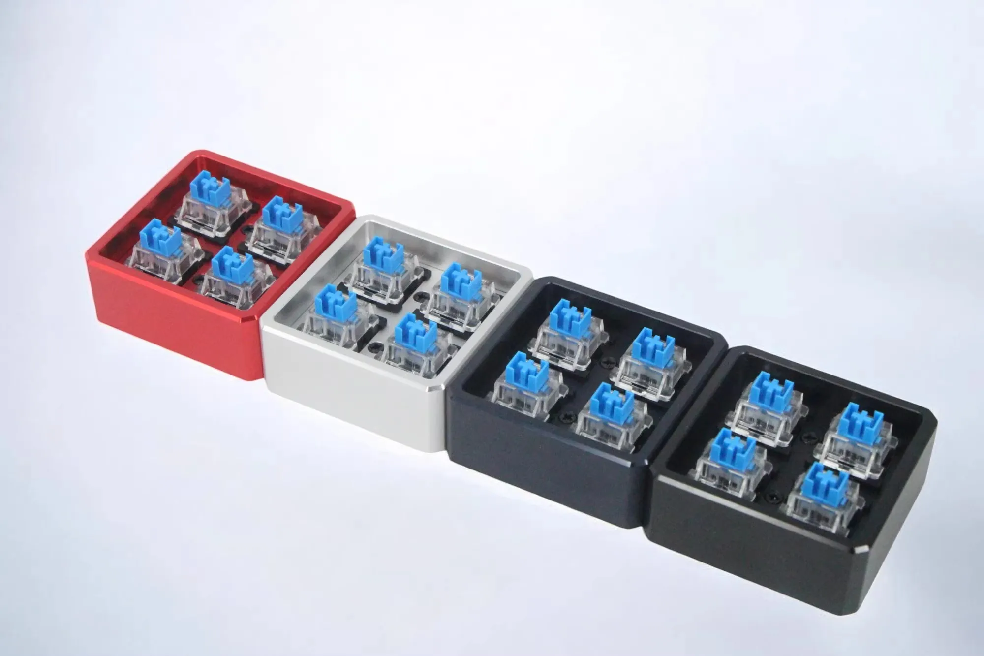 Teclado a través de la mini almohadilla de aluminio y prueba el rendimiento de varios cuerpos de eje en la almohadilla de aluminio y la tapa de la llave de aluminio.