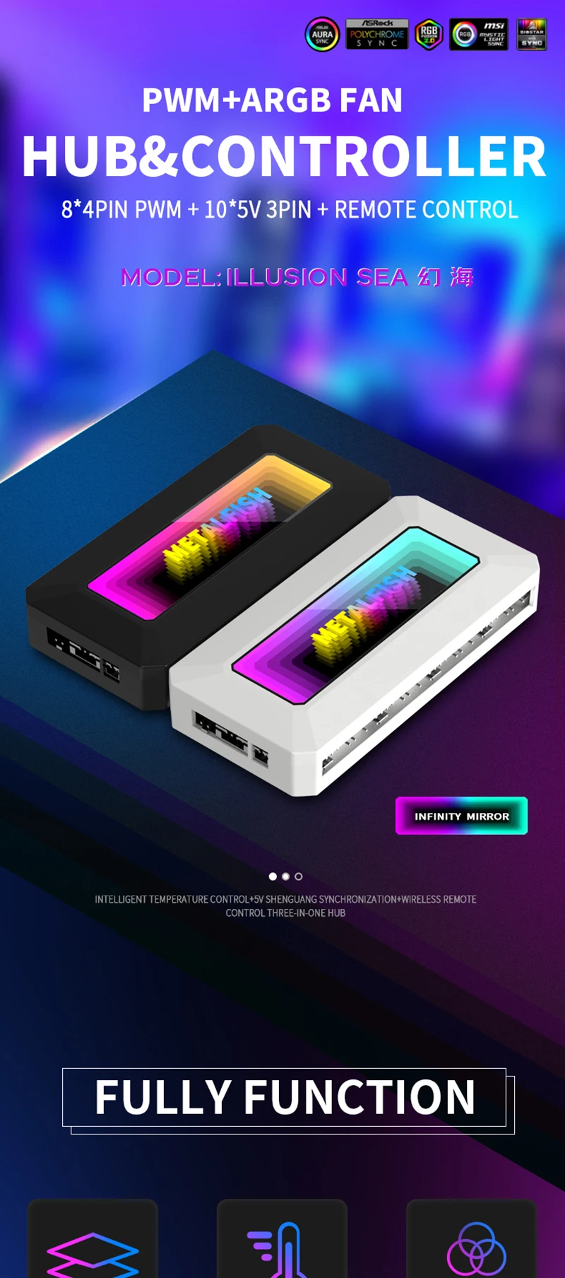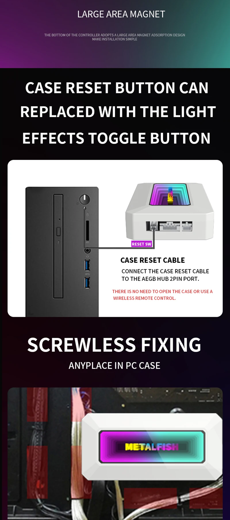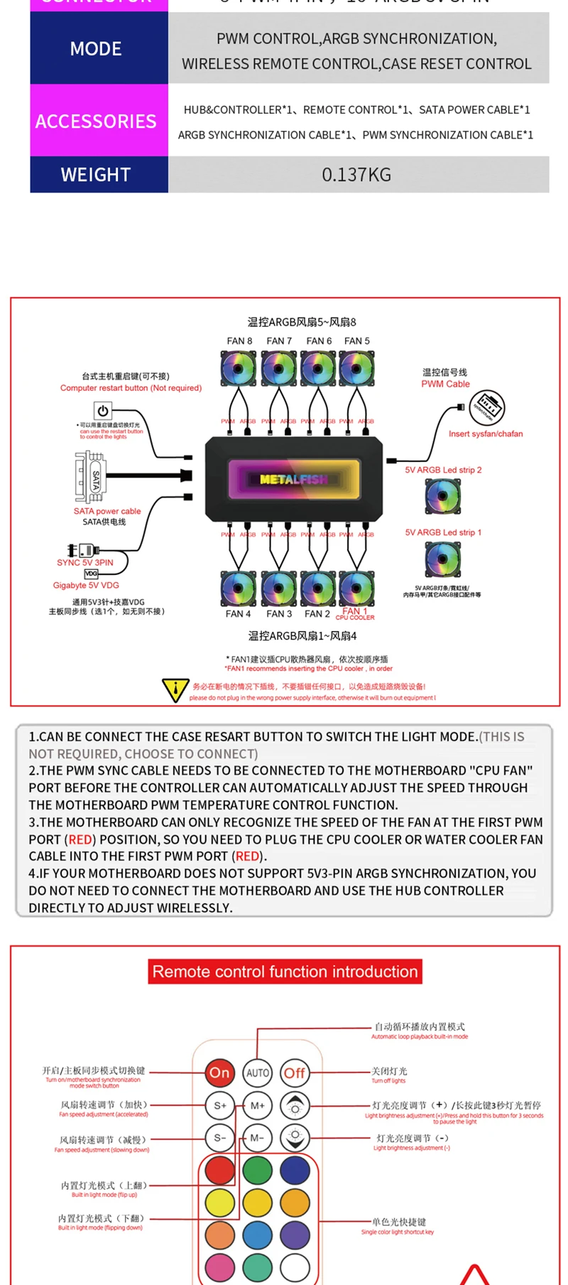 METALFISH-Divisor de cubo de ventilador ARGB con PWM de 4 pines para ordenador, refrigeración, sincronización, radiador de CPU, 5V, 3 pines, tira de luz LED, control remoto