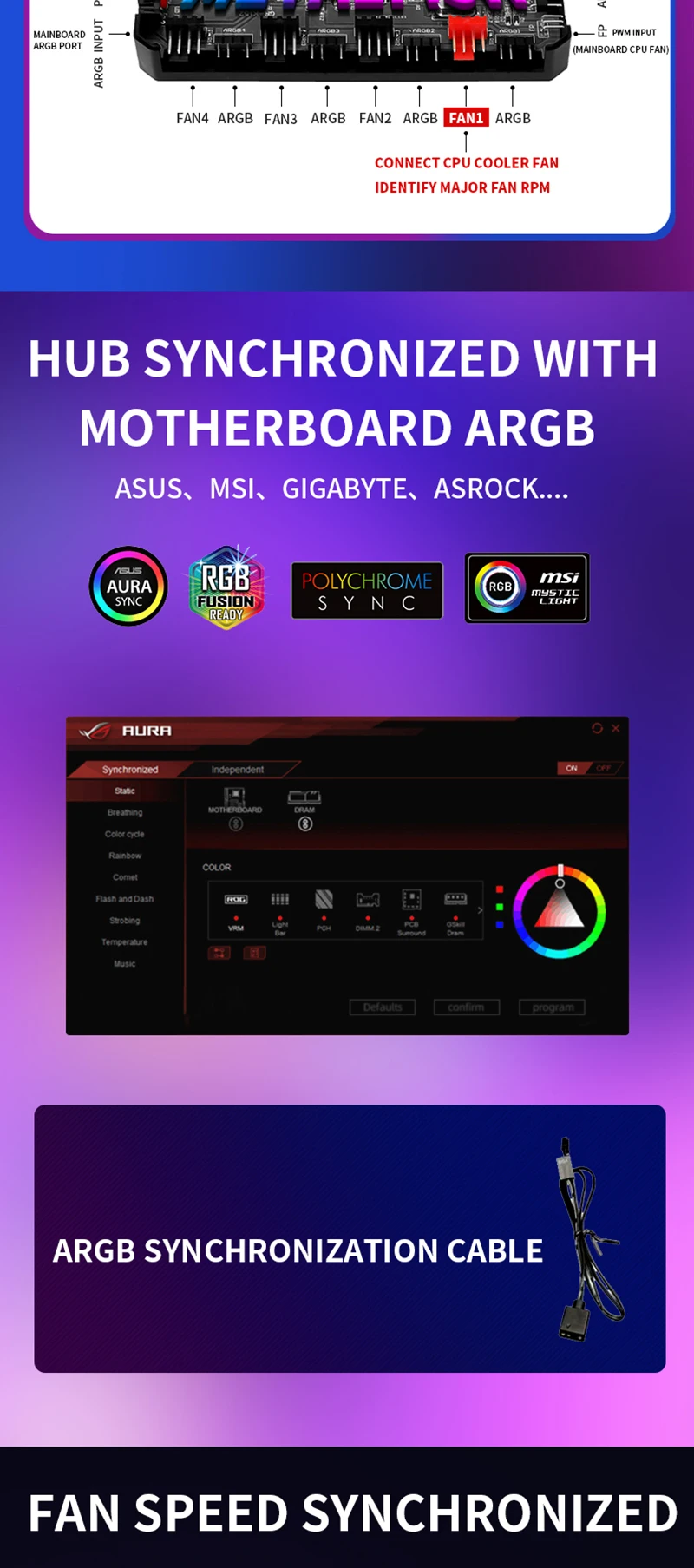 Comprar METALFISH-Divisor de cubo de ventilador ARGB con PWM de 4 pines para ordenador, refrigeración, sincronización, radiador de CPU, 5V, 3 pines, tira de luz LED, control remoto