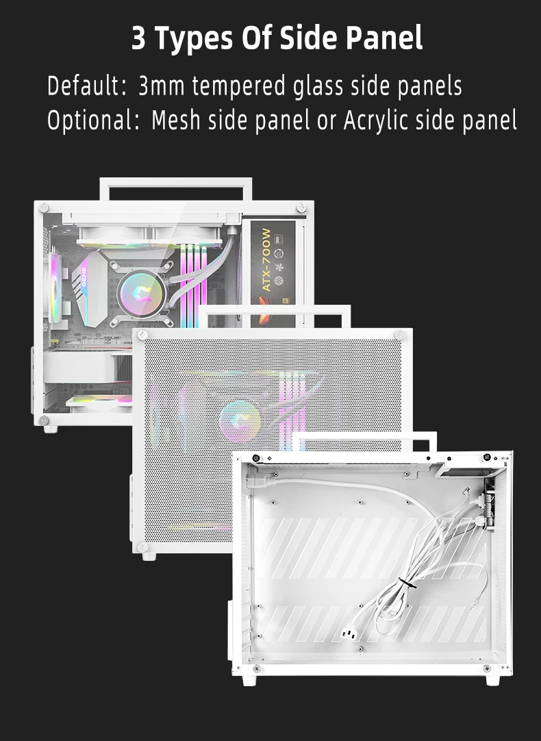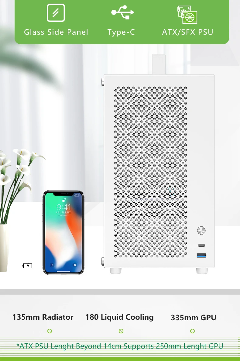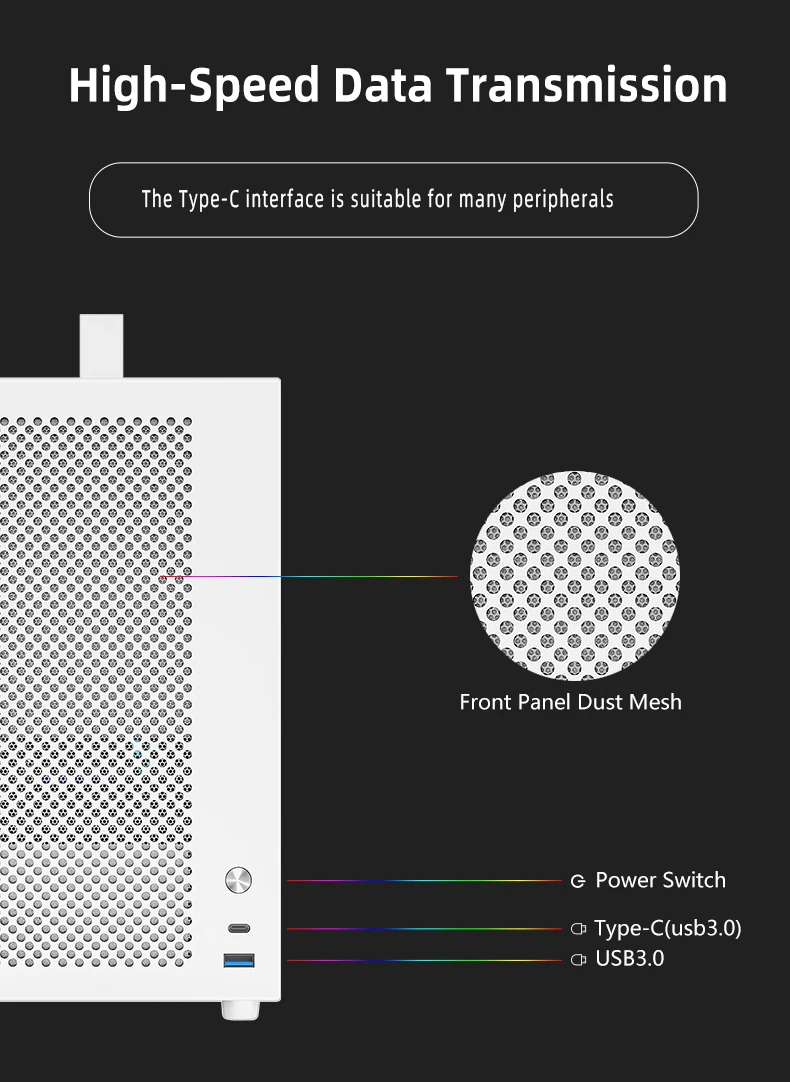 Compatibilidad con HDD: HDD de 3,5 pulgadas * 1 (obstran 2 espacios de ventilador en la parte inferior), SSD de 2,5 pulgadas * 2