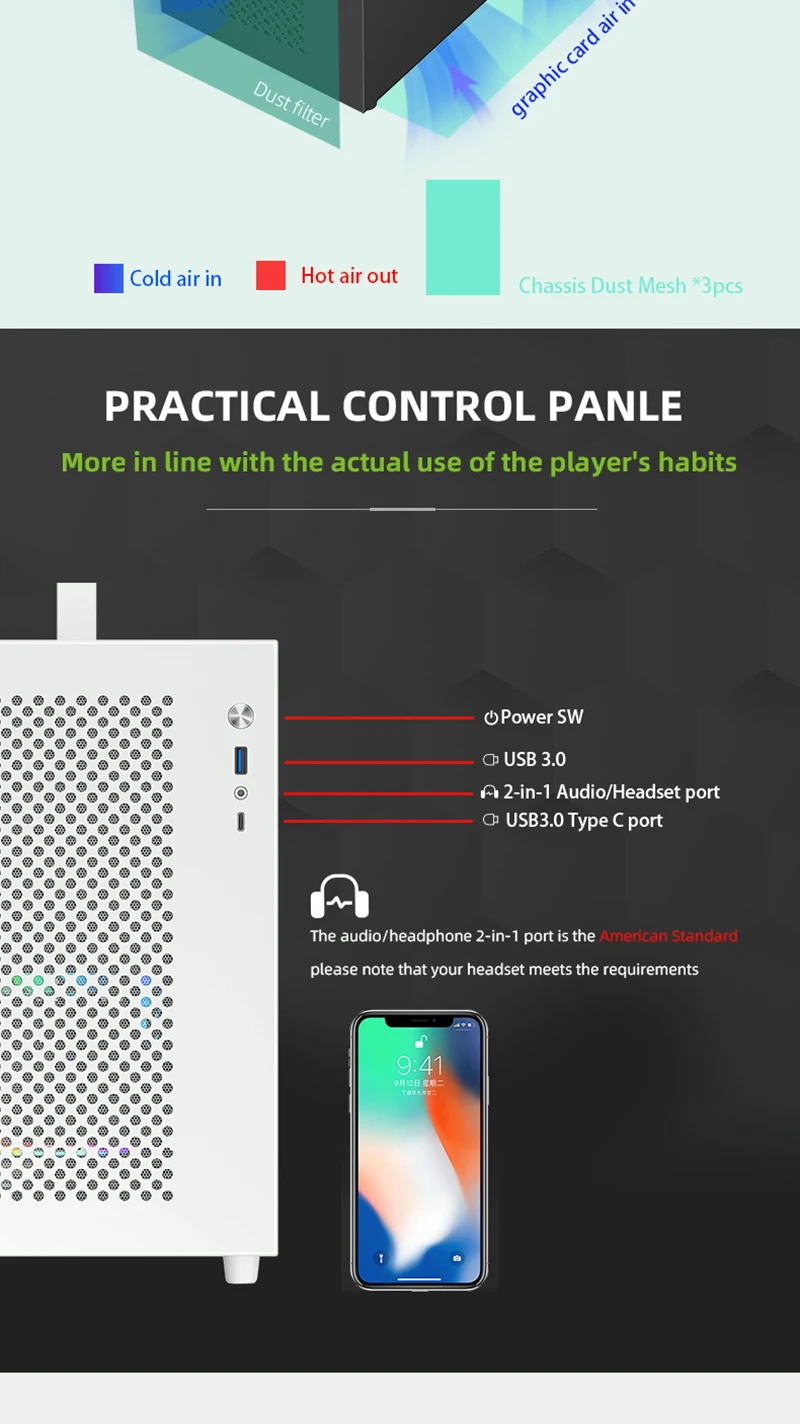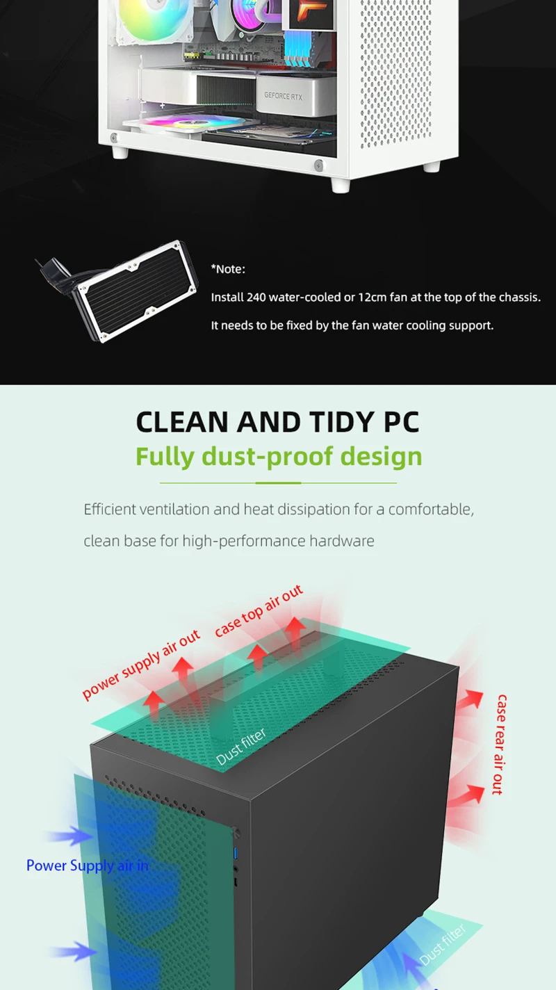 Comprar METALFISH S9 MATX Caja de computadora Soporte de chasis de PC para juegos MATX/ITX/ATX PSU/240 Enfriador de líquido/GPU de 360 mm