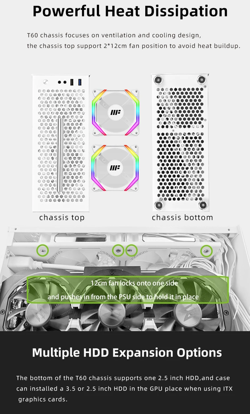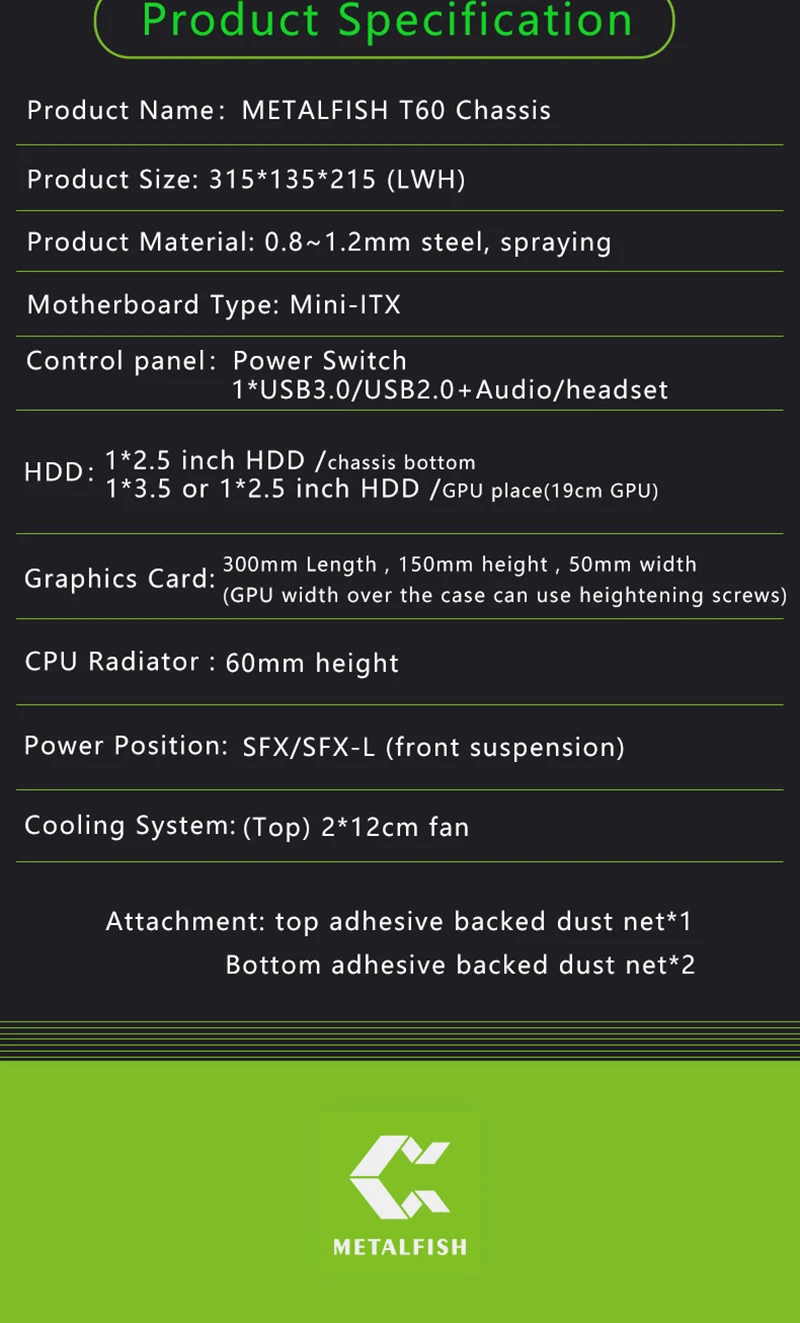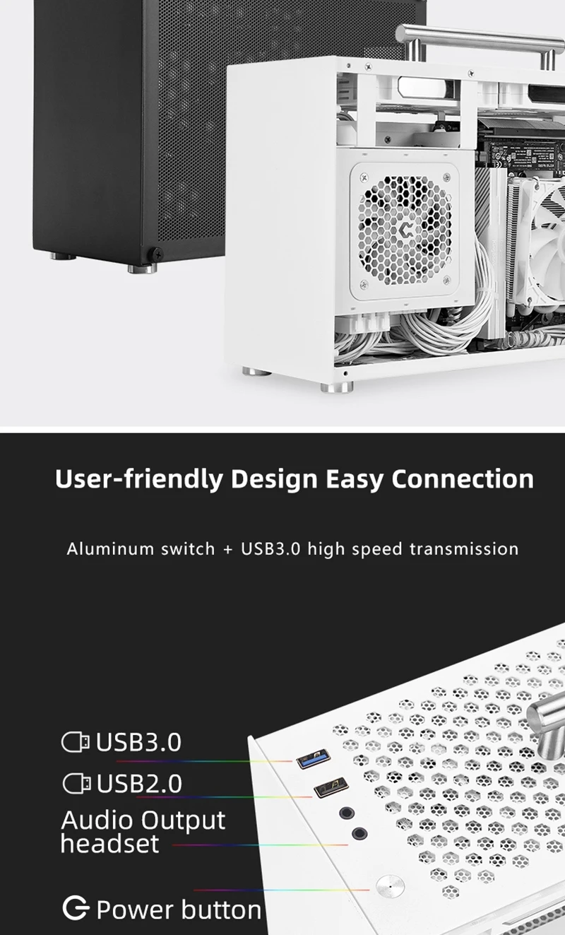 Comprar METALFISH T60 Mini ITX caja negra 9L con Panel lateral acrílico o malla y soporte de mango portátil SFX PSU/310mm GPU/2*120mm ventilador