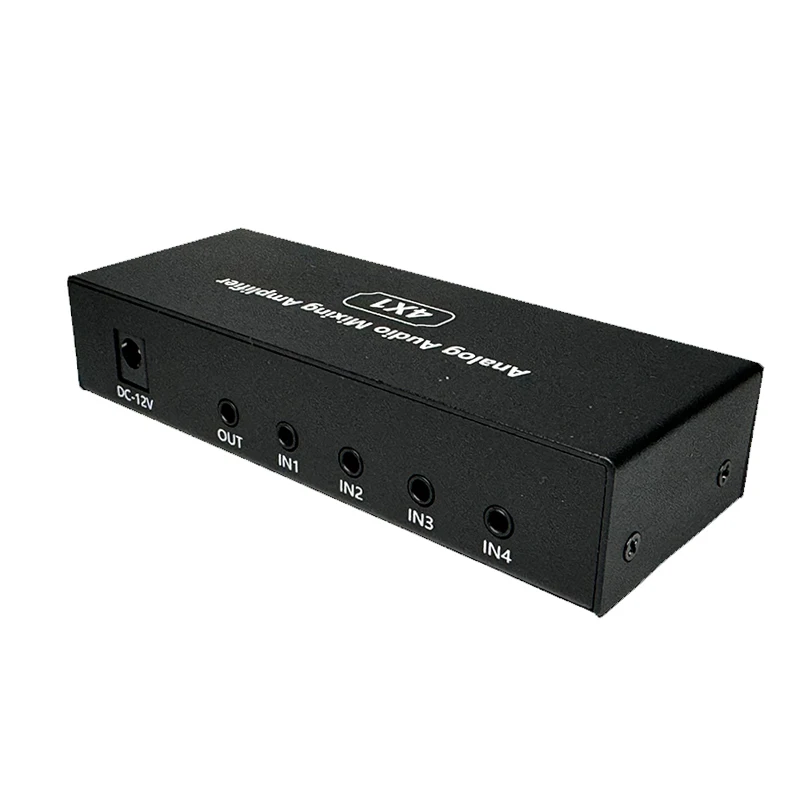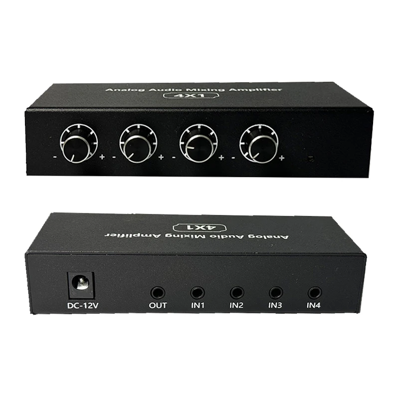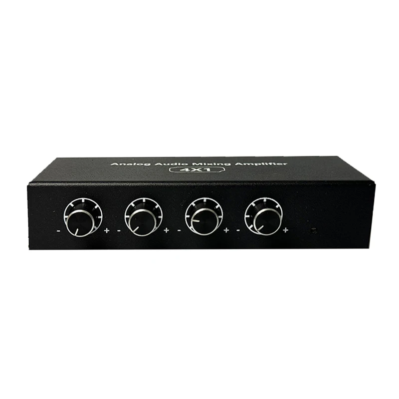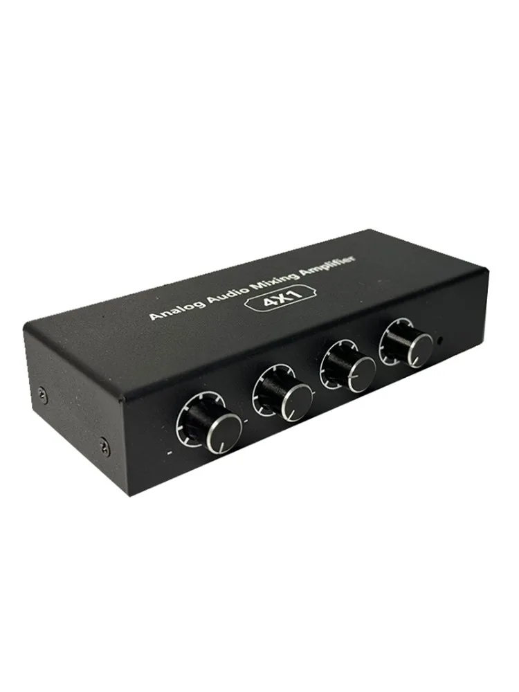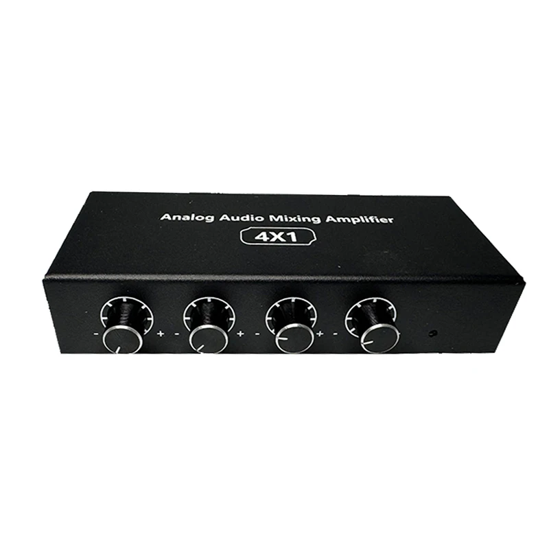 Comprar Mezclador de audio estéreo de 3,5 mm 4 en 1 salida Control de volumen independiente Mezclador de línea estéreo de 4 canales 4x1 con adaptador de corriente de 12 V