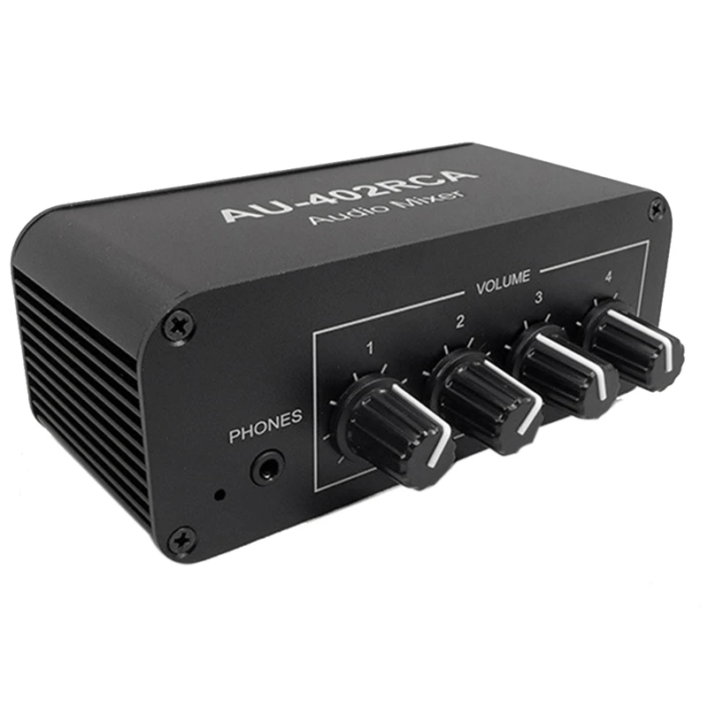 Comprar Mezclador de Audio estéreo AU-402RCA, fuente de Audio multicanal, reverberador, Control de volumen, 3,5 Mm, controlador de auriculares, 4 entradas, duradero