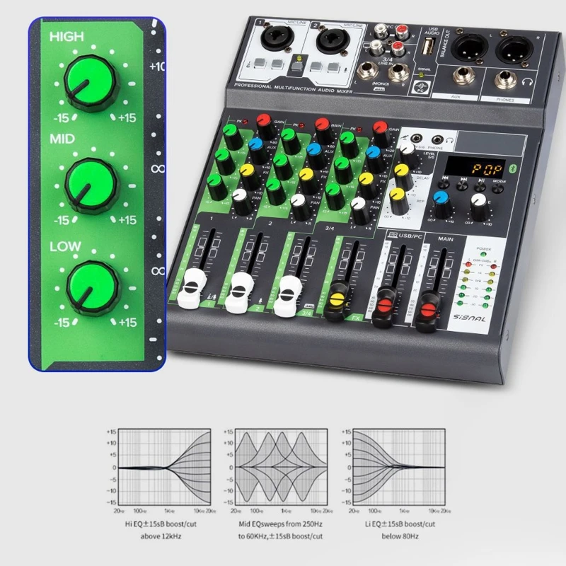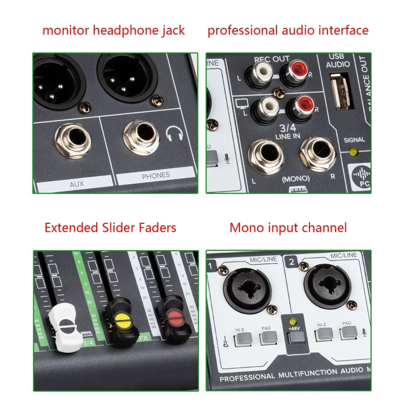 Comprar Mezclador de Audio profesional de 4 canales, consola de mezcla de sonido compatible con Bluetooth, mezclador de buena sensibilidad, Mini tablero mezclador de Audio para DJ