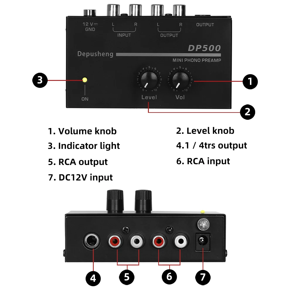 4. Audio con sonido claro: el mini preamplificador fono crea una ecualización suave para un audio claro y equilibrado.Ayuda a limitar la distorsión y para obtener un sonido de la mejor calidad, asegúrese de enchufar de forma segura todos los cables.