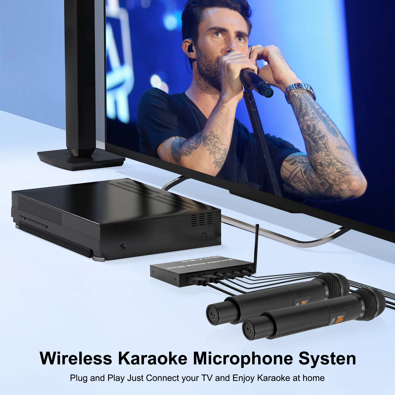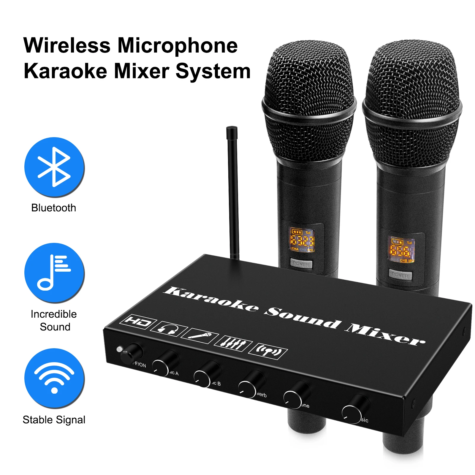 Con dos micrófonos inalámbricos de alta calidad, no necesita preocuparse por entrar y salir del sonido durante el uso.El Bluetooth incorporado le brinda una experiencia de audio única. Es ideal para música de DJ y fiestas en casa que puede disfrutar fácilmente de la diversión del karaoke instantáneo.