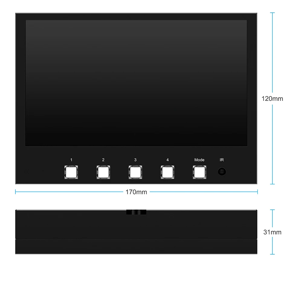 【Con 4 botones】Con 4 botones para seleccionar señales de entrada. Podemos obtener una vista previa de 4 señales HDMI y hacer fácilmente la configuración del botón