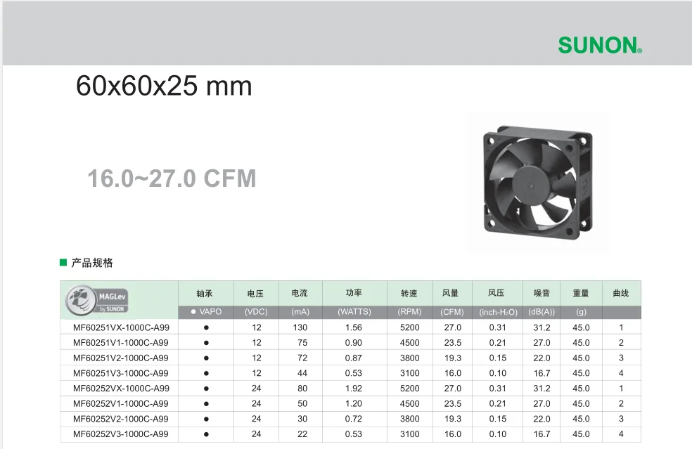 Comprar MF60252VX-1000C-A99 para ventilador Sunon 6025 24V 6cm ventilador convertidor de velocidad de flujo de aire máximo