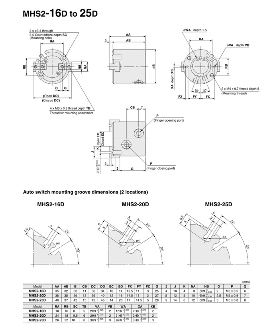 MHS2/MHS3/MHS4-16D/20D/25D/32D/40D/50D serie 2/3/4 dedo pinza neumática reemplazo cilindro de aire giratorio de doble acción