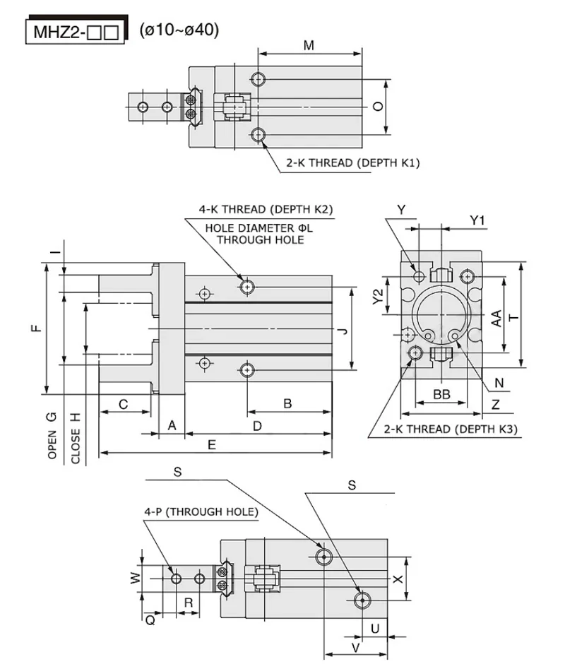 MHZ2 10D 16D 20D 25D 32D 40D MHZ2 10S MHZ2 10C pinza de aire paralela cilindro neumático tipo SMC pinza de doble o de una sola acción