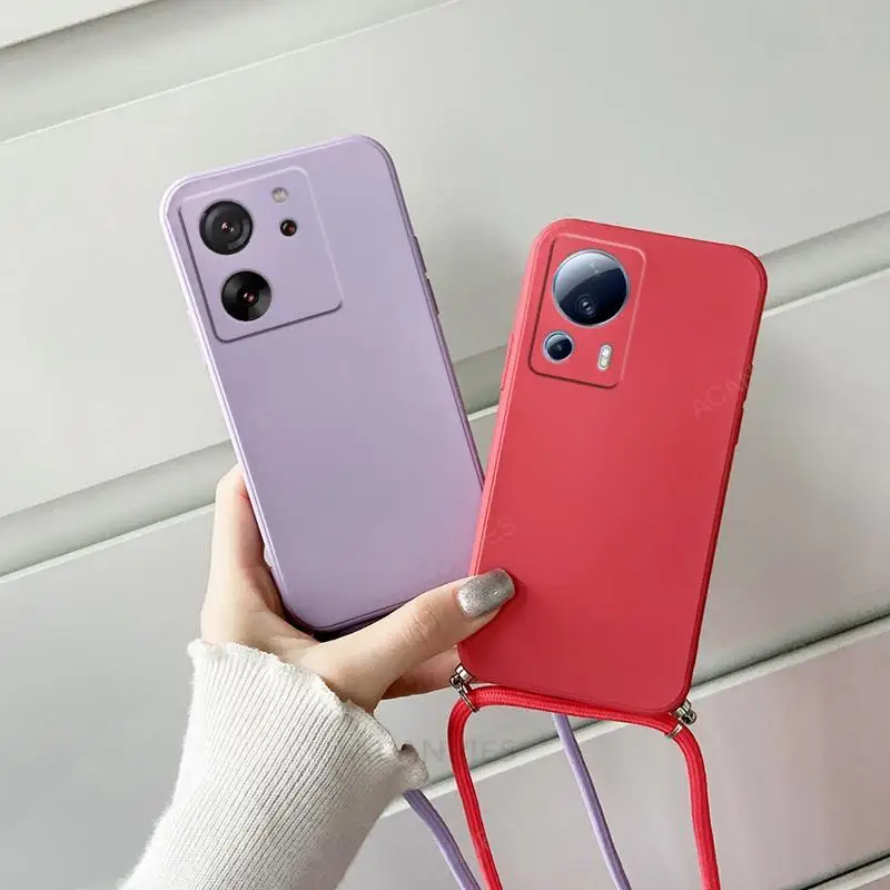 Mi13T 13Lite Crossbody Collar Correa Cordón Funda de silicona líquida para Xiaomi Mi 13T Pro 13 Lite 5G Mi13 13Pro 13tPro Funda