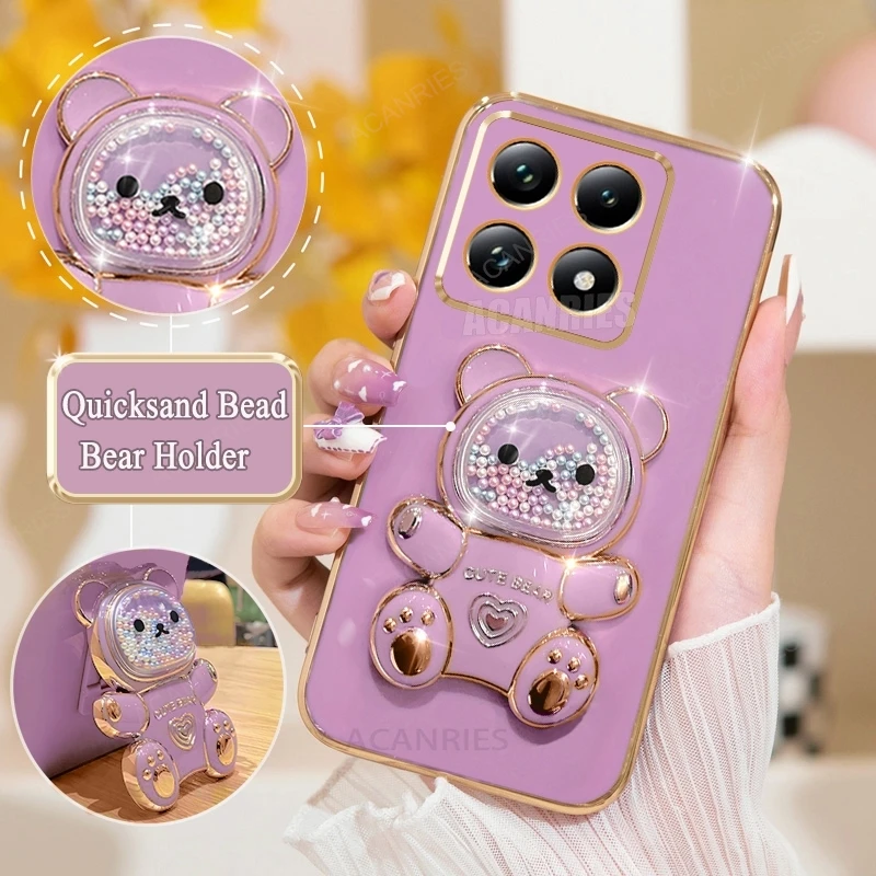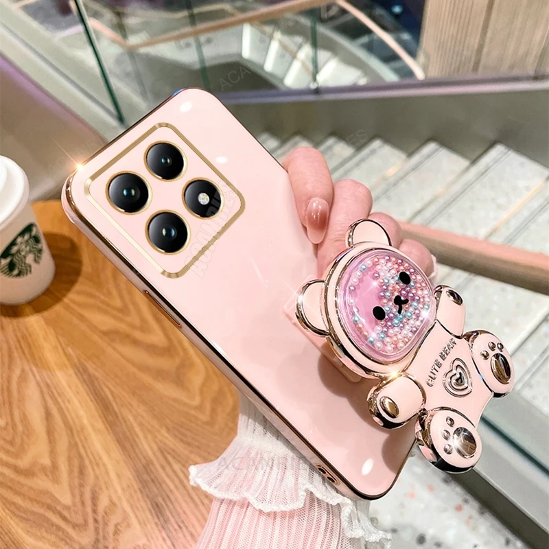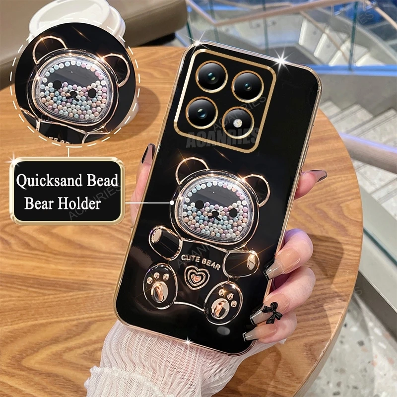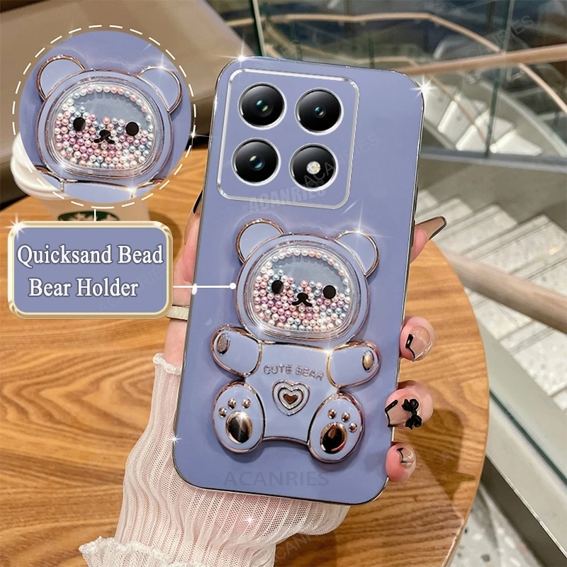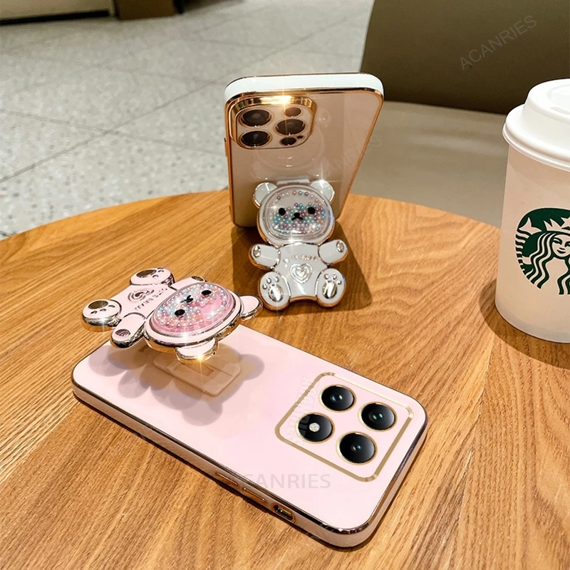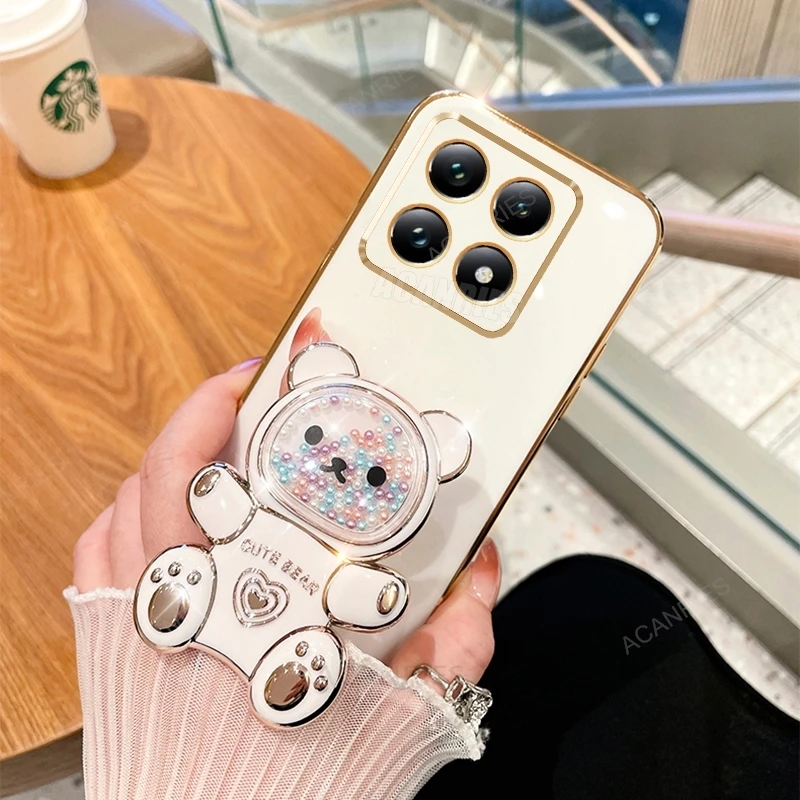 Mi14t funda chapada con soporte de oso de arenas movedizas de lujo para Xiaomi Mi 14t Pro 14tpro Mi14 14 T funda de silicona con soporte Xiaomi14t Mi14tpro